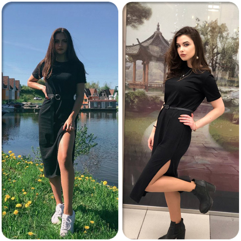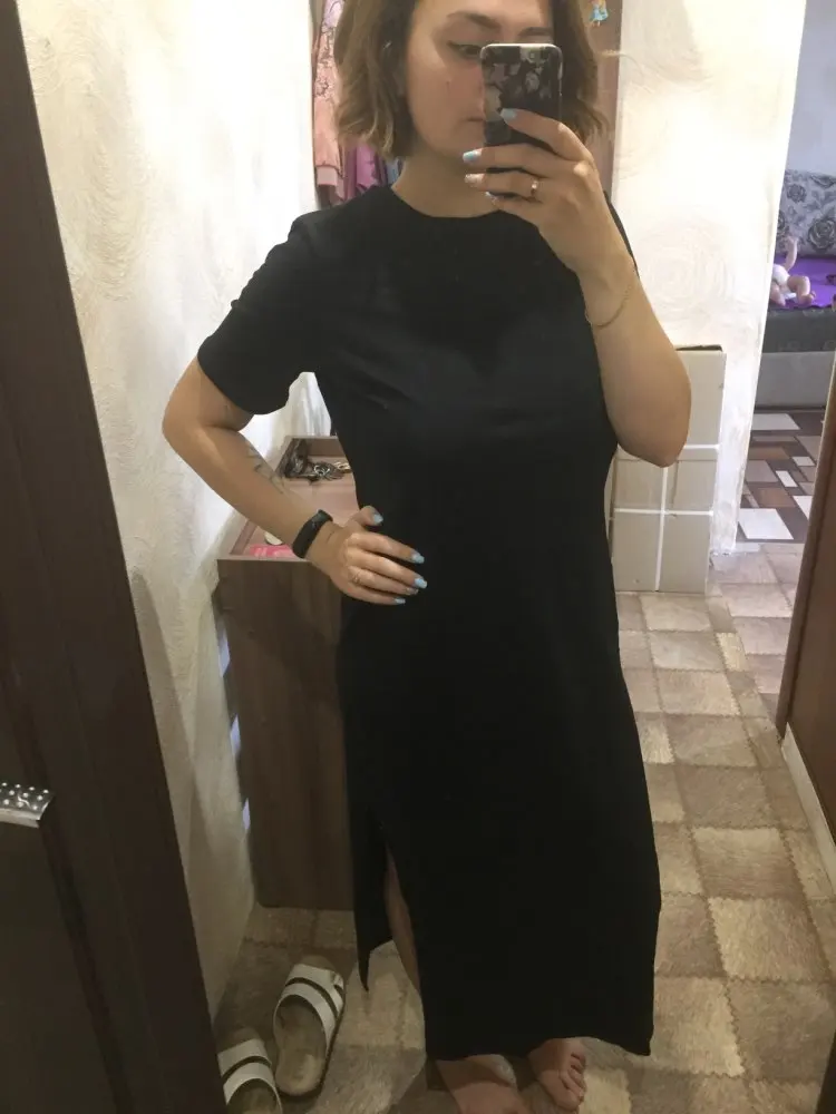 Delivery to tver 5 days by courier. The dress is knitted tight. My parameters: 95/75/95 height 165. Weight 57. Size m is not in the guise, free, like a large t-shirt. Above the ankle cm by 10. excellent fit. I'm happy in general.