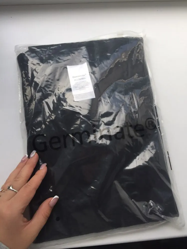 Before st. petersburg in record 5 days. The quality is excellent, the fabric is a dense t-shirt. Smell, there are no defects, protruding threads can be cut off. Parameters 84/60/94-free but feminine.