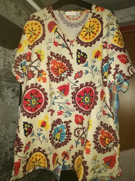 Interesting, rather shirt, fabric gauze dense, if so you can say, bright, delivery fast.