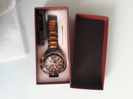Like!! All protected with plastic film, beautiful box, the watch is heavy, material quality, store…