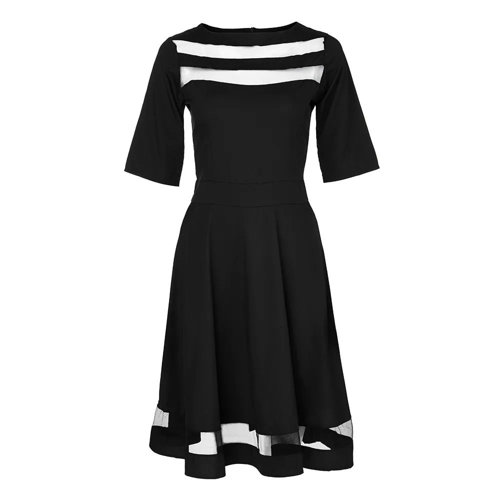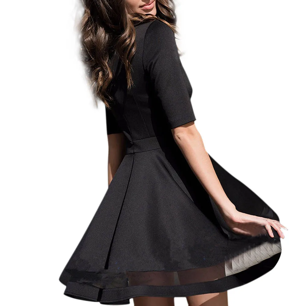 FREE SHIPPING Mesh Insert Bardot Flare Dress New A Line Long Sleeve Short Dress Female Party Black Tunic Dress Autumn Dress JKP2511