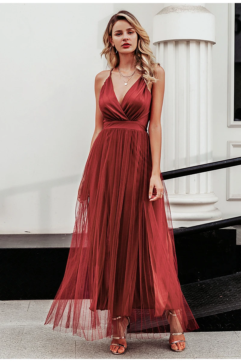FREE SHIPPING Mesh pink lace women dress Elegant v neck evening maxi christmas dress Autumn winter sexy long party dress vestido festa JKP2144