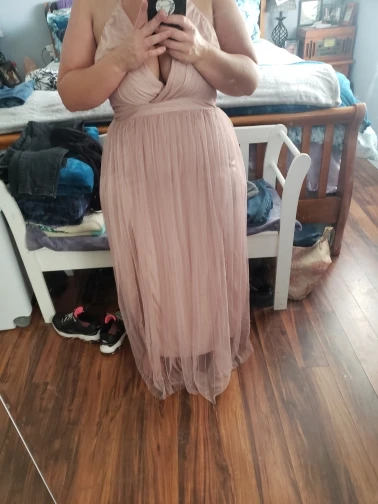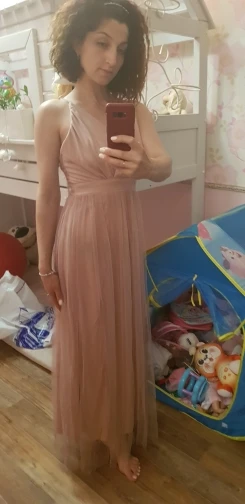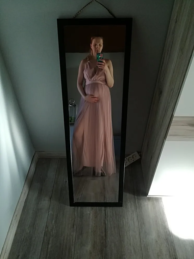 Beautiful, cudowna. The dress is with good material, well sewn. Camouflages pregnancy belly.