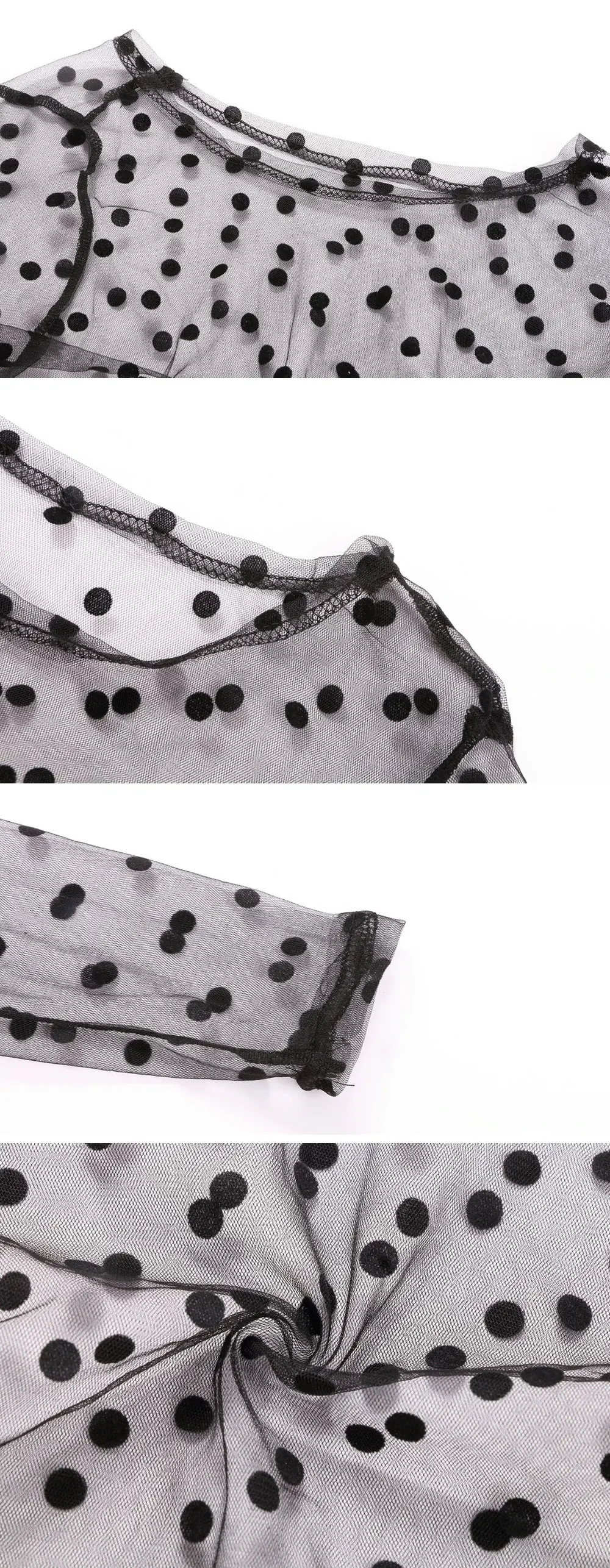 FREE SHIPPING Mesh Top Polka Dot T Shirt Women O Neck Long Sleeve T-Shirts Sexy Black Transparent Punk Style Streetwear Tees Beach Tops JKP1559Material: Polyester Size: S/M/L/XL