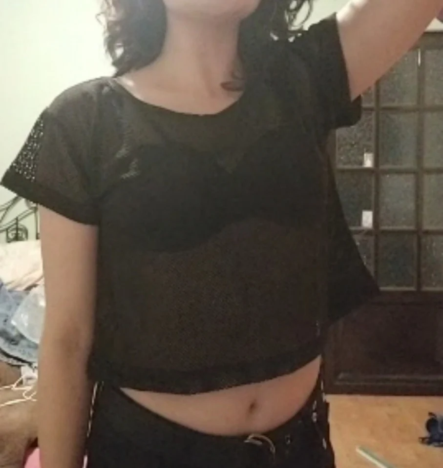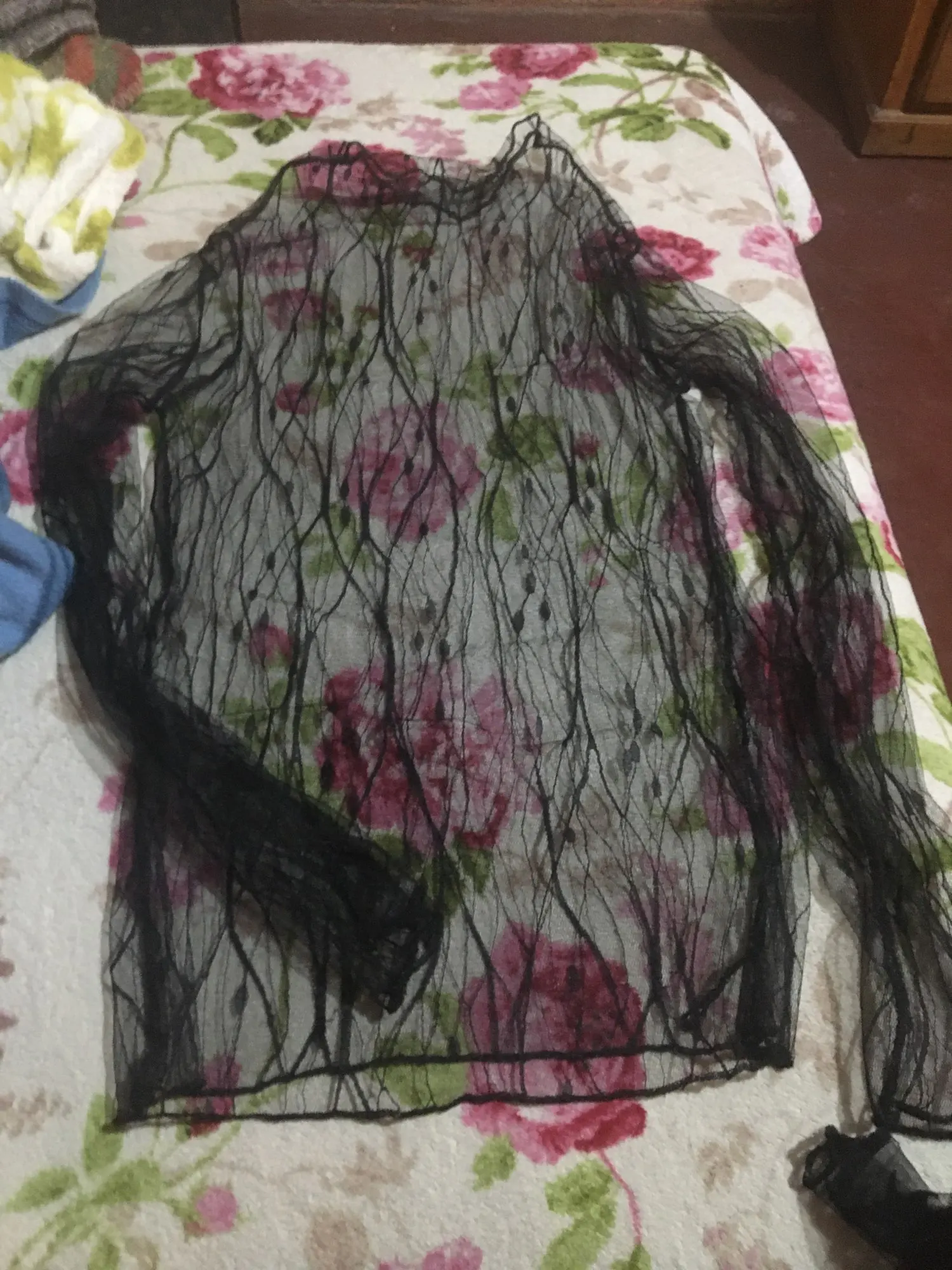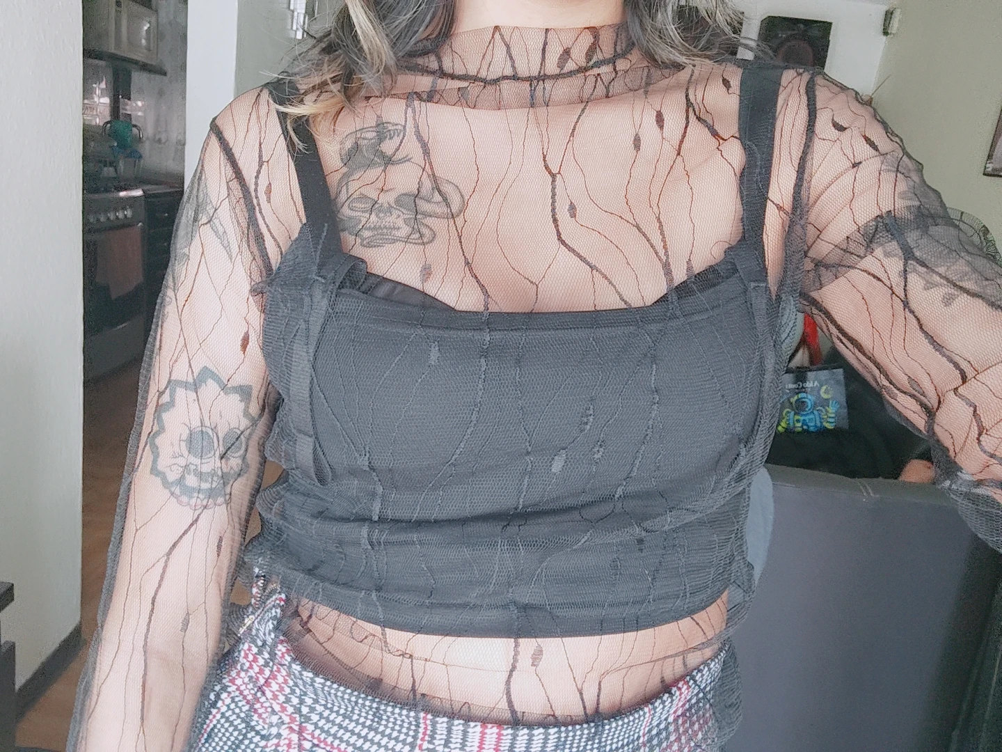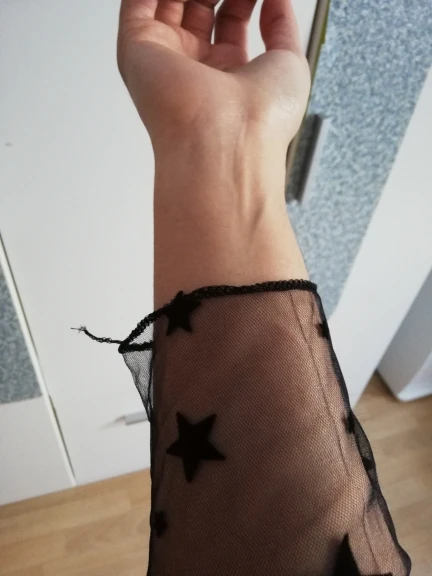It looks pretty, the fabric is kind of weird but already on it looks good. If it's super transparent but it combines perfectly when you wear something chosen underneath. Thank you very much to the store.