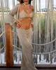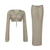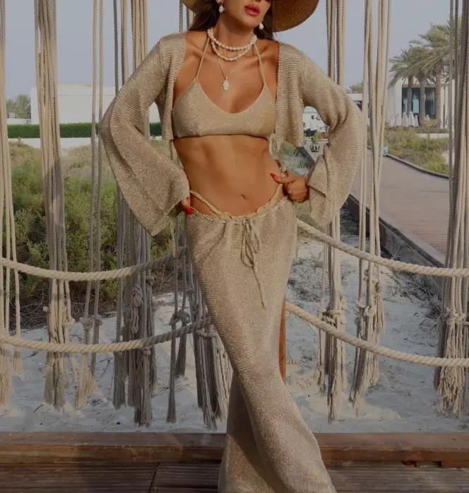 FREE SHIPPING Metallic Gold Knit 2 Piece Set Sexy Tank Top And Wrap Long Skirt JKP7305