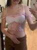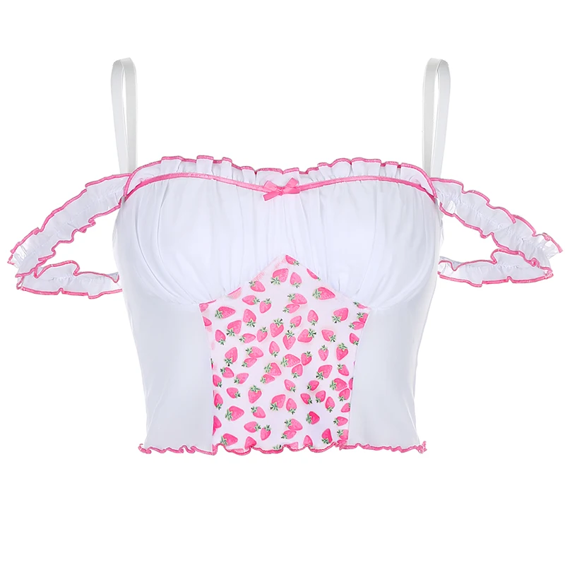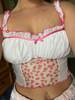 FREE SHIPPING Milkmaid Crop Tops Patchwork Mesh JKP4549