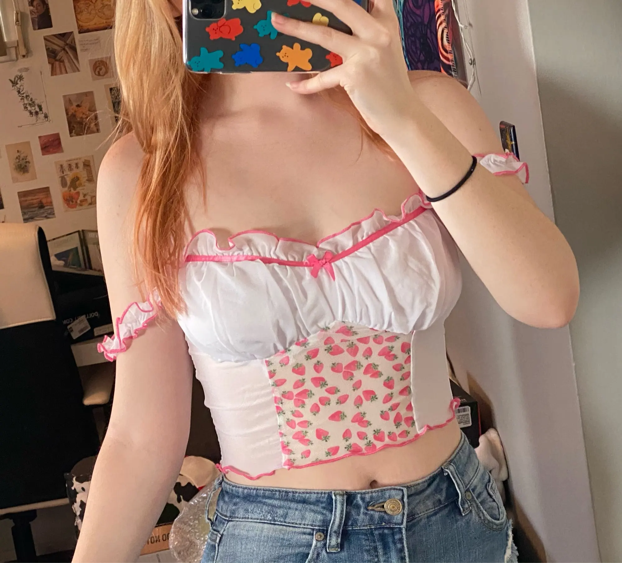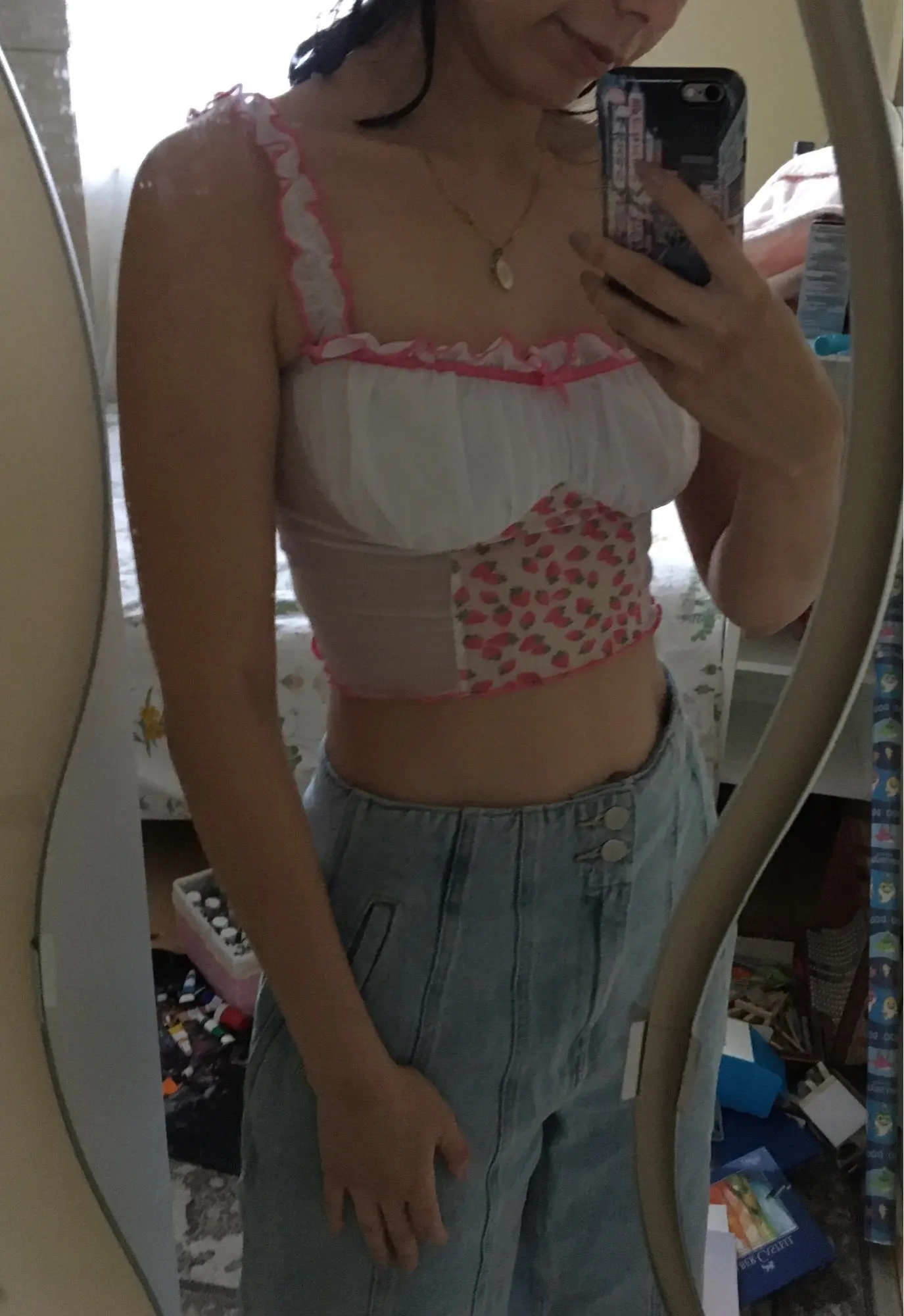 PLEASE this shirt is so cute!! it fits perfectly (true to size!) and is so pretty... i don’t even need to wear a bra or anything it’s so nice. the waist part is mesh by the way!! also follow me on insta @aashlyn.rosee !!