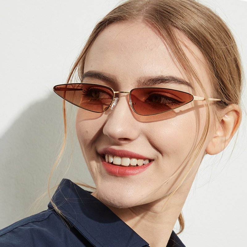 Vintage Kawaii Mini Cat Eye Metal Frame Sunglasses Women Colored Mirror Sunglasses Street Fashion Show Shade Sun Glasses