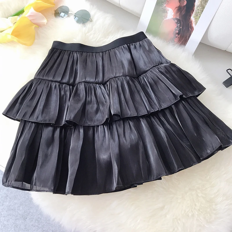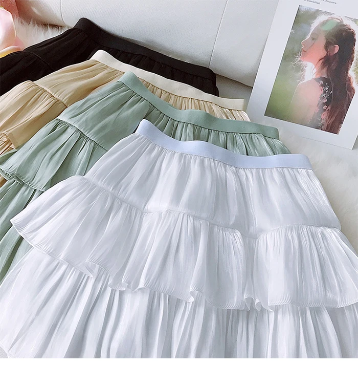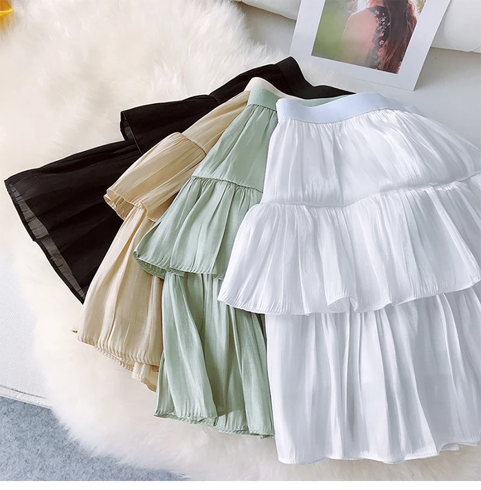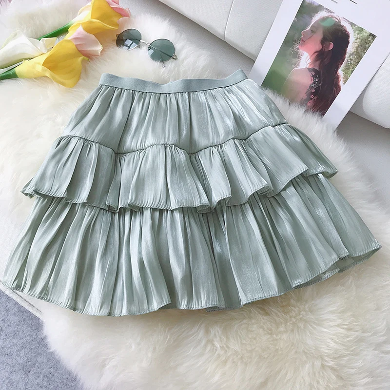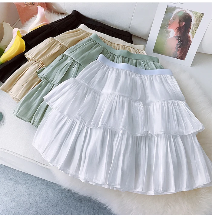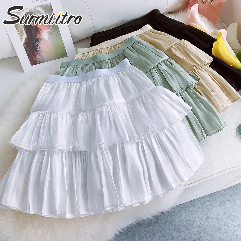 FREE SHIPPING Mini Short Pleated Summer Shorts Skirt White Black Green Ruffles High Waist A line Sun School Skirt JKP1551