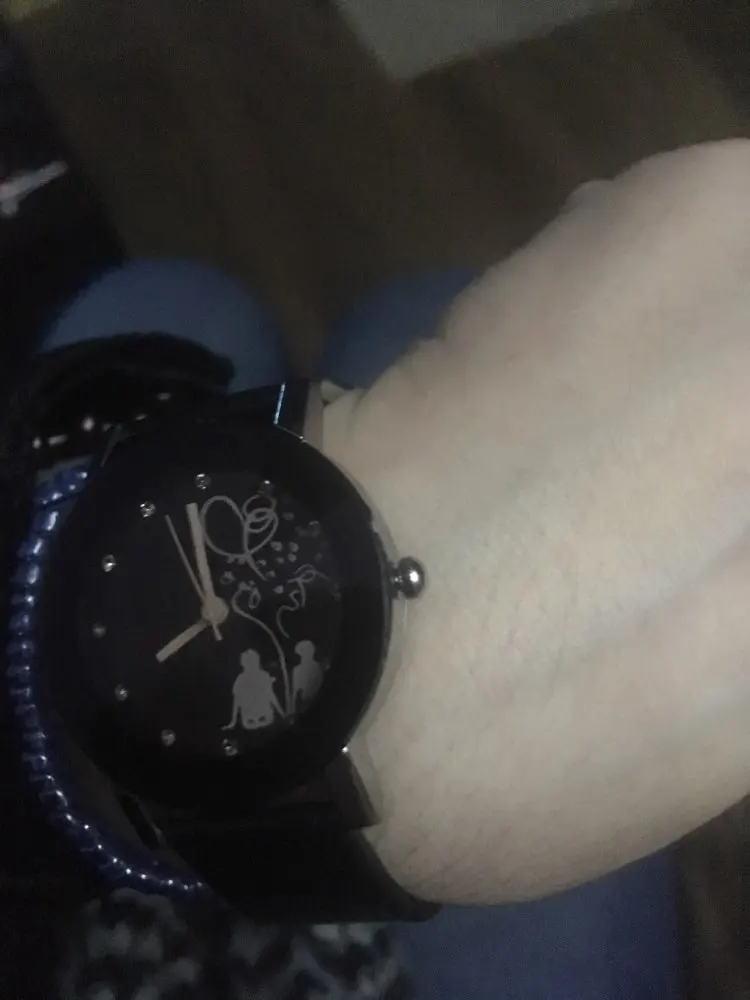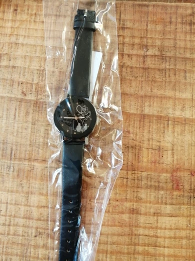 Strap very tacky. The plastic. No, but not dziwi me it. I think looking at pictures of auction and price it you get this guess. The picture on the watch face seen naklejoną folijkę (it no scratches or anything like that), not zdejmowałam, because watch is not for me. Watch was well protected in the shipment.