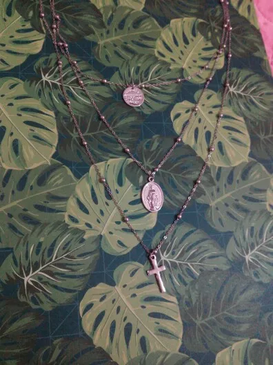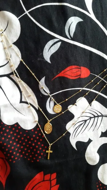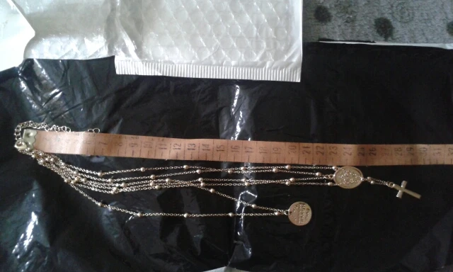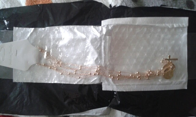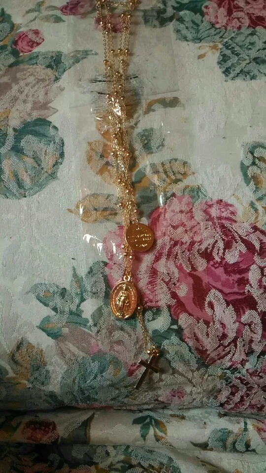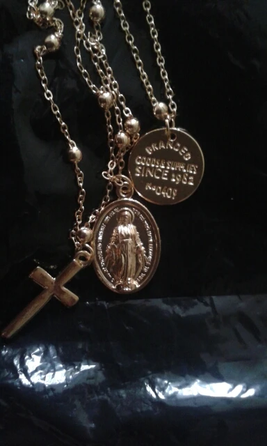 looks great! gold color rose gold.-марией девой pendant. necklace length is adjustable.