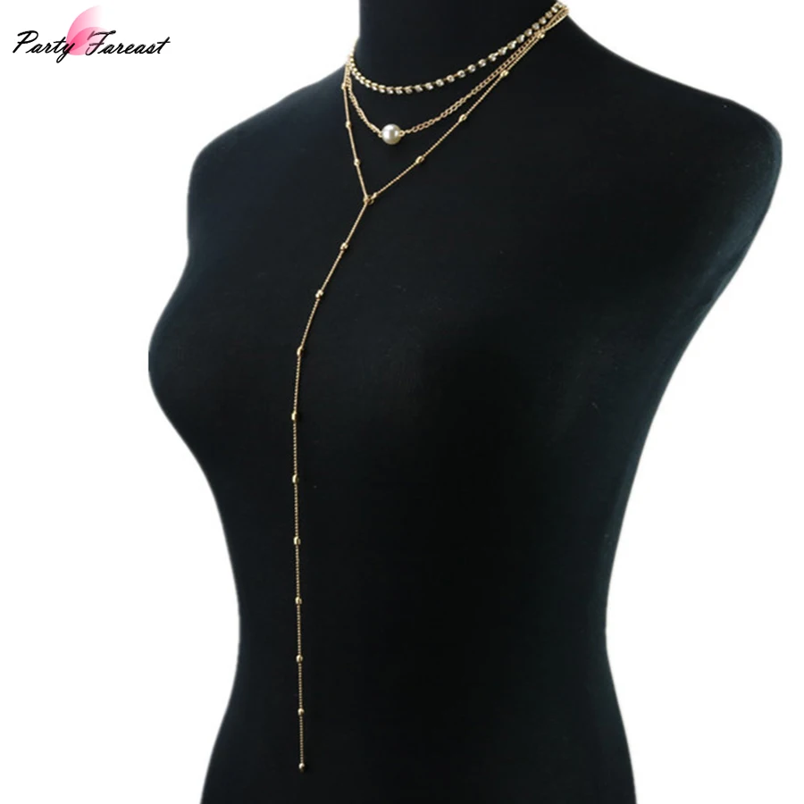 FREE SHIPPING Multilayer Long Tassel Body Chains Kit Choker Jewelry Gold Color Halter Necklaces JKP1054