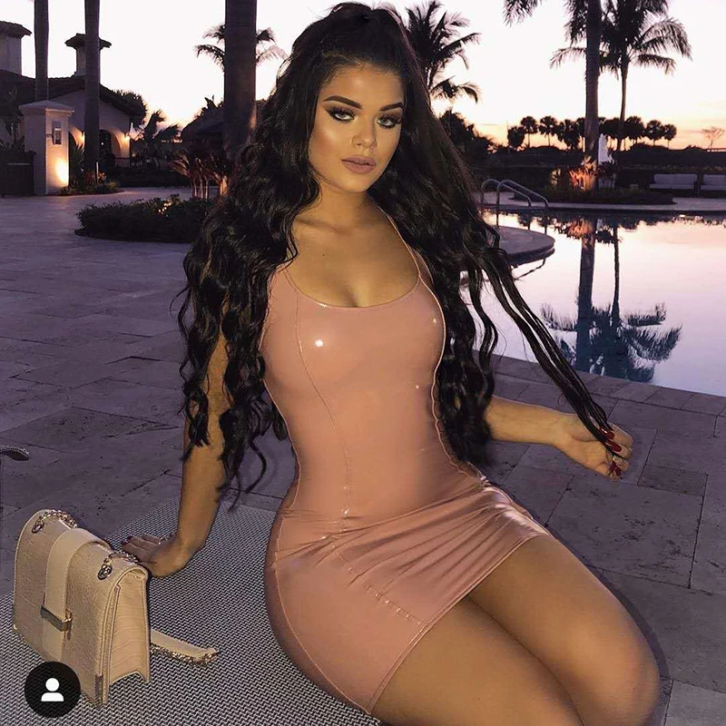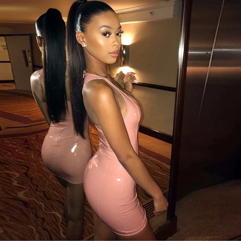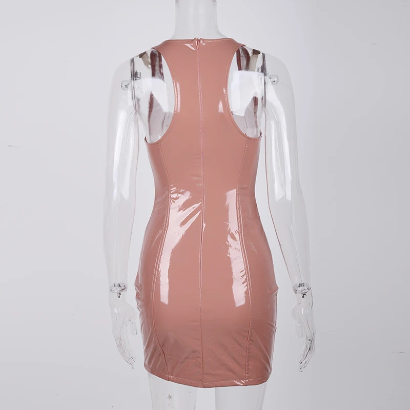 FREE SHIPPING Neon Green Pu Leather Dress Women Summer Sleeveless Sexy Dress Woman Party Night Club Wear Slim Fit Bodycon Dress Red JKP2274