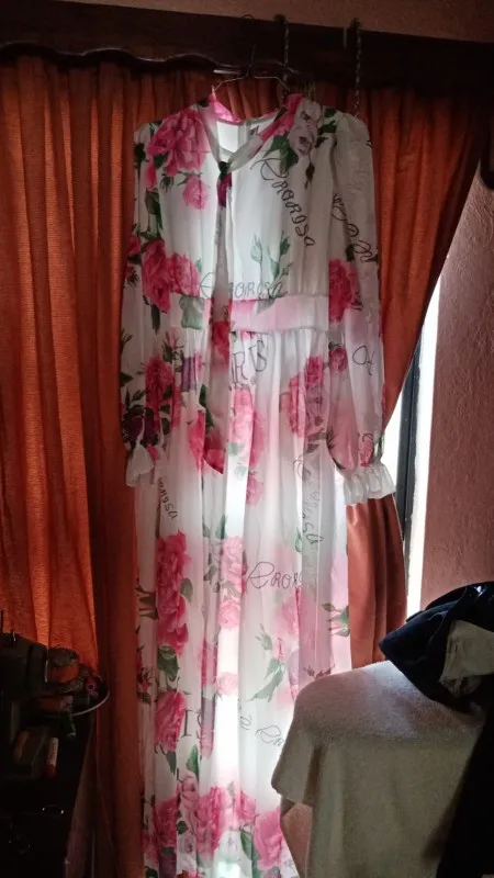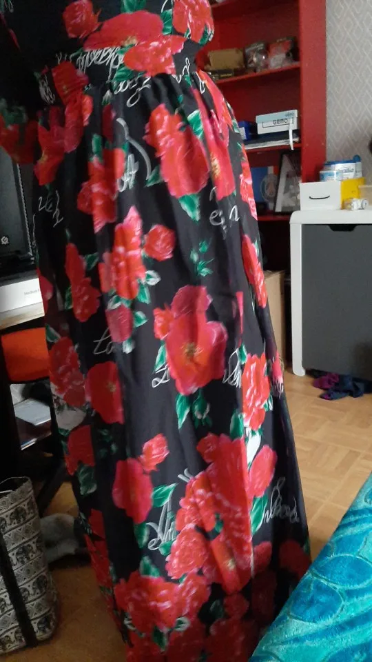 Beautiful dress, do not electrify, half a treasure along the entire length, does not shine through, 46 took 3XL is too big, long on the height of 165 and plus 10 cm 10 Super! Zip and elastic at the waist at the back. It came quickly!