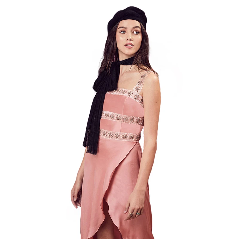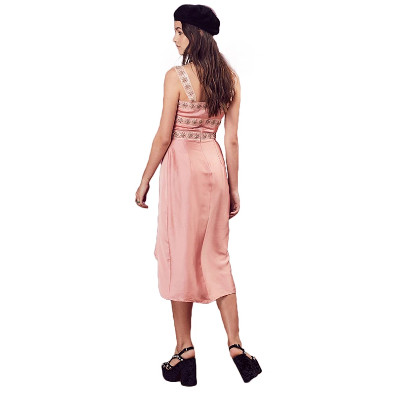 FREE SHIPPING New Arrival Casual Sweet Pink Flower Strap High Low Dress Sleeveless High Waist Slim Wrap Female Midi Dress JKP2505