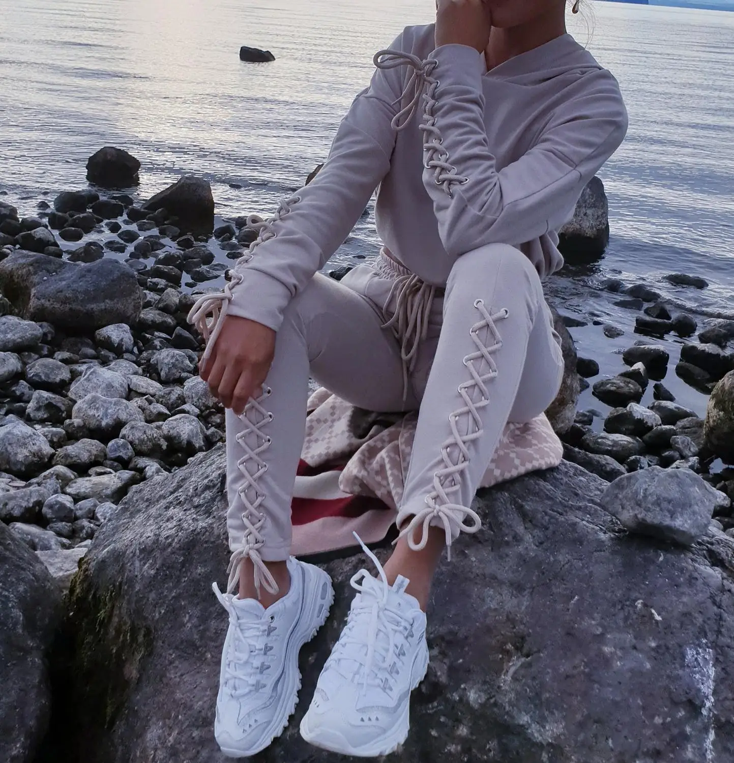 The suit is good. The fabric is light and thin, does not stretch. There are threads. Shoelaces need to be filled yourself, they are in a separate package packed. On the pope pants sit not very, but in general the suit looks good