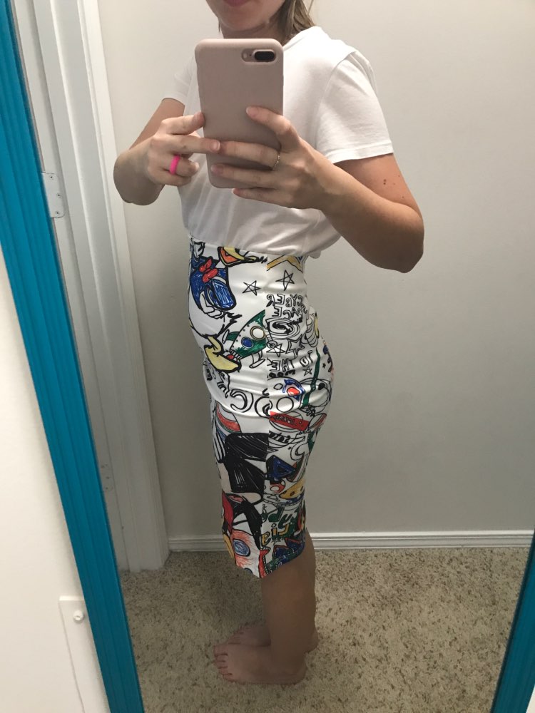 Skirt is really cool but very long. I am 165 cm had to pull it very high. Fabric is stretchy synthetic. Not sure will it work out for hot summer. Definitely worth the money.