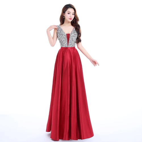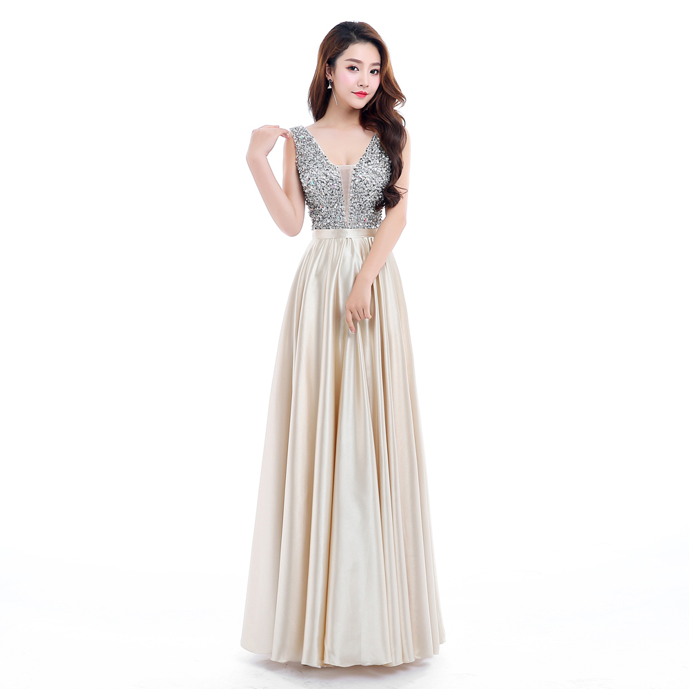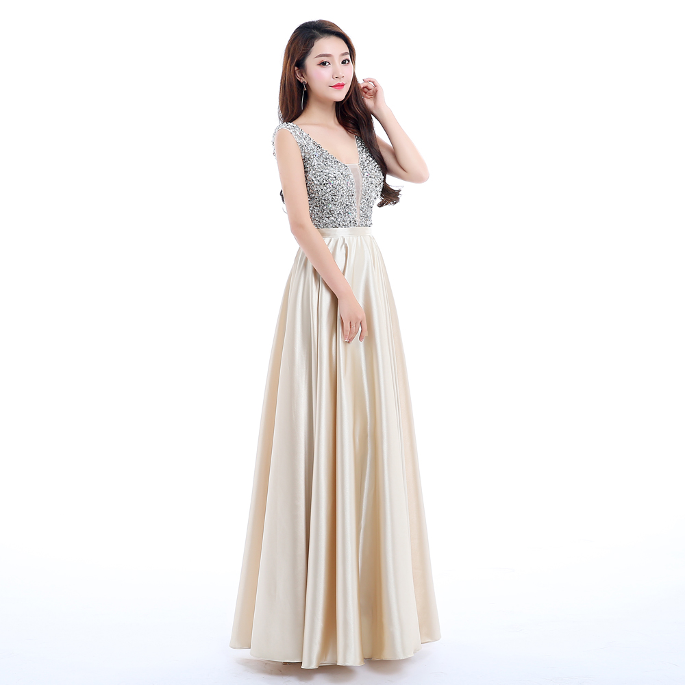 FREE SHIPPING New Gown V-Neck Beads Bodice Open Back A Line Long Evening Dress Party Elegant Vestido JKP1539