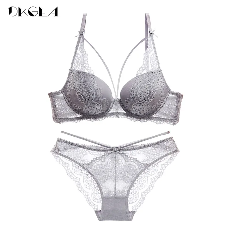FREE SHIPPING New Green Underwear Set Women Bra Push Up Brassiere Cotton Thick Black Gather Sexy Bra Panties Sets Embroidery Lace Lingerie Set JKP2705