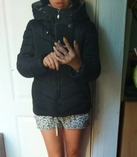 The jacket is excellent. Ordered m, measured with a sweater, does not press, just right. Height 152, weight 50 kg.