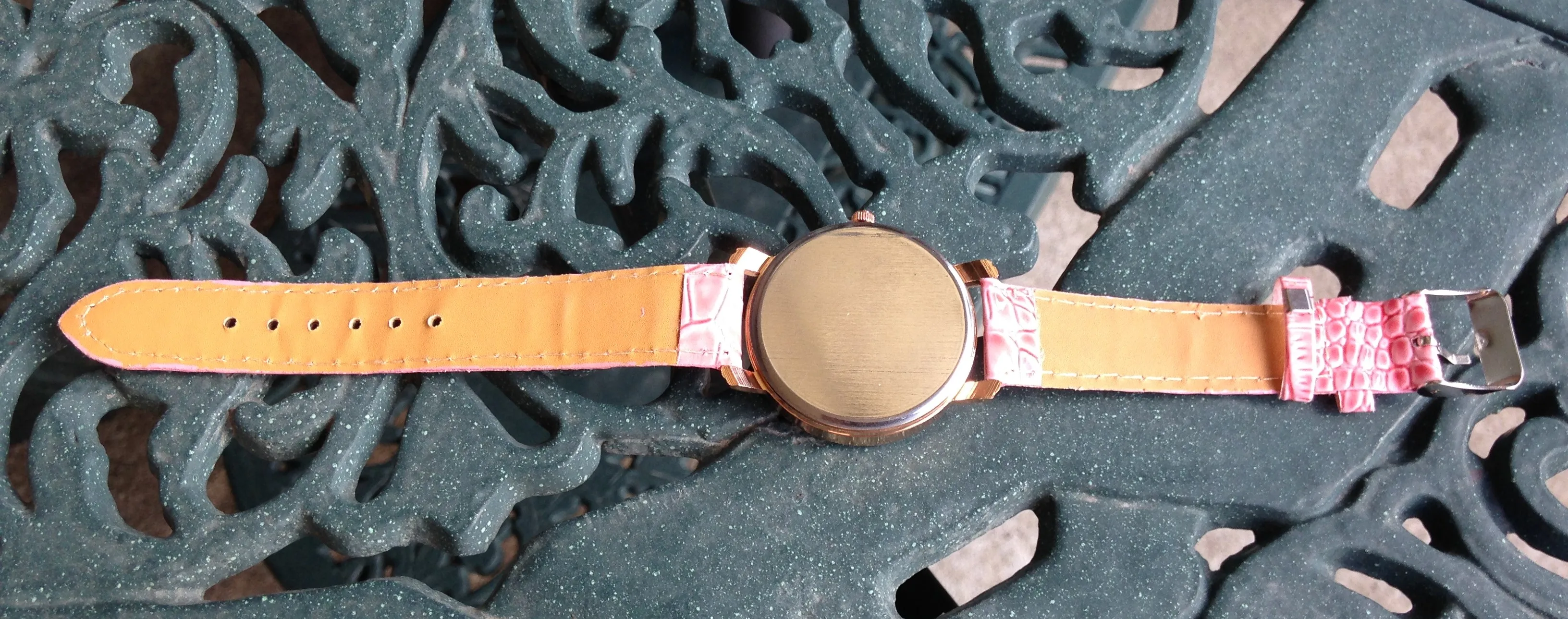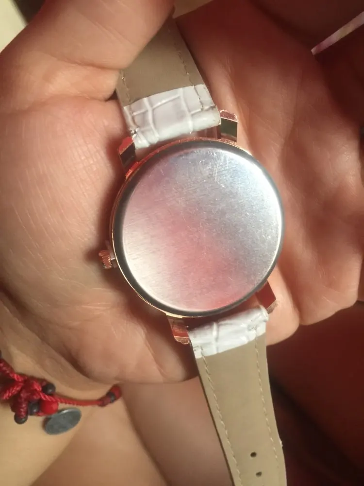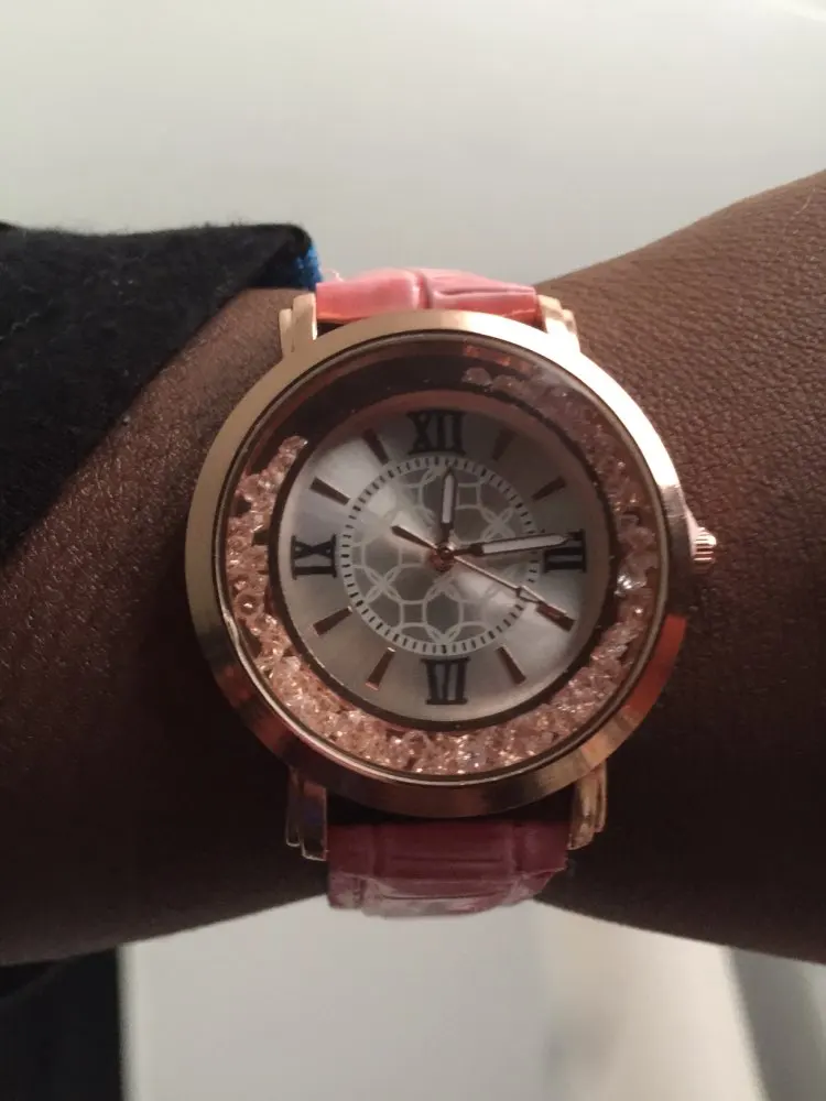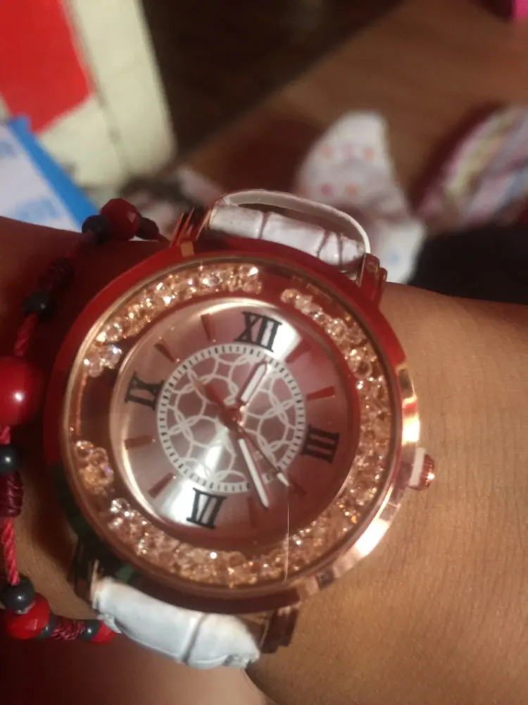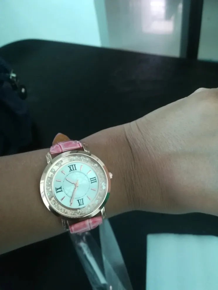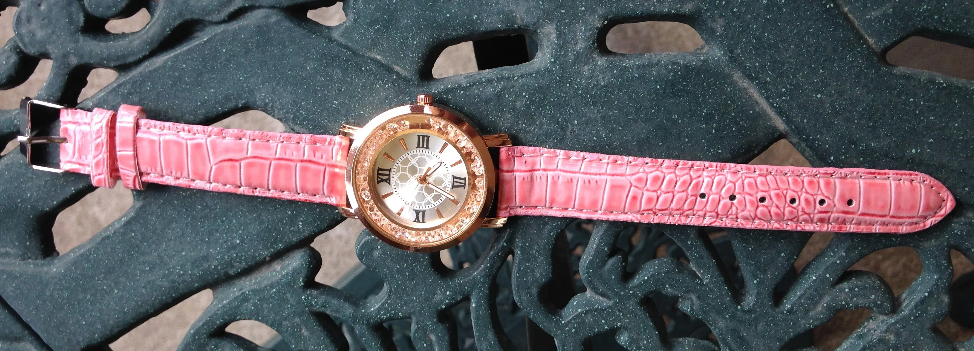 This is my 2nd purchase of this watch from this buyer. I bought this watch on Aliexpress from this store on July 30th, 2019. I received it today, August, 8th, 2019. So that is less than 10 days from China to Quebec, Canada. It came to me tracked and it was well packed, safely. The watch corresponds to the description. The color is true. The watch band is sewn right up to the face on either side of the strap. Therefore, I will not lose the watch when wearing it. The little beads inside the face may be silicone in order not to scratch the inside of the glass. It is very nicely and thoughtfully made. It has been working thus far without any problems. Thank you to the seller for another smooth transaction. 5 Stars! I uploaded 4 pictures of this watch for my review. Cheers!