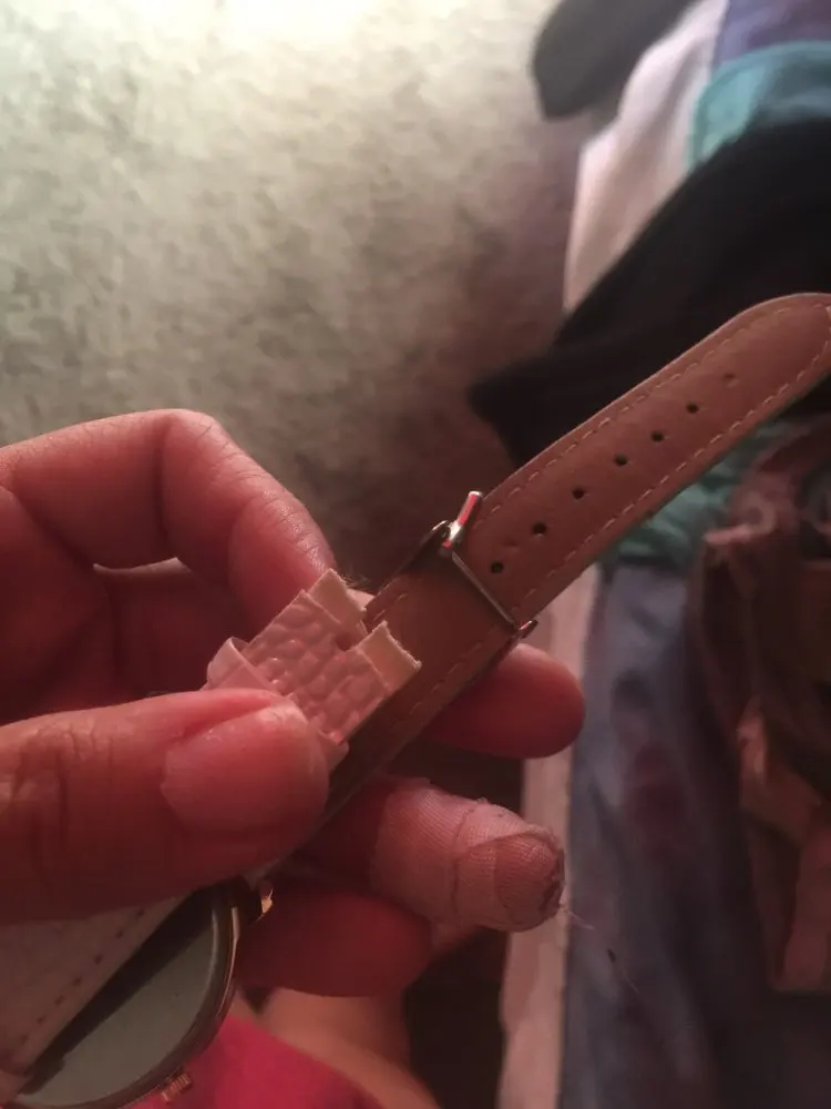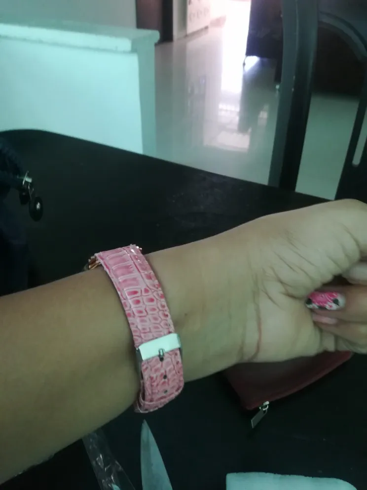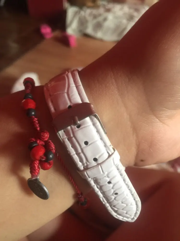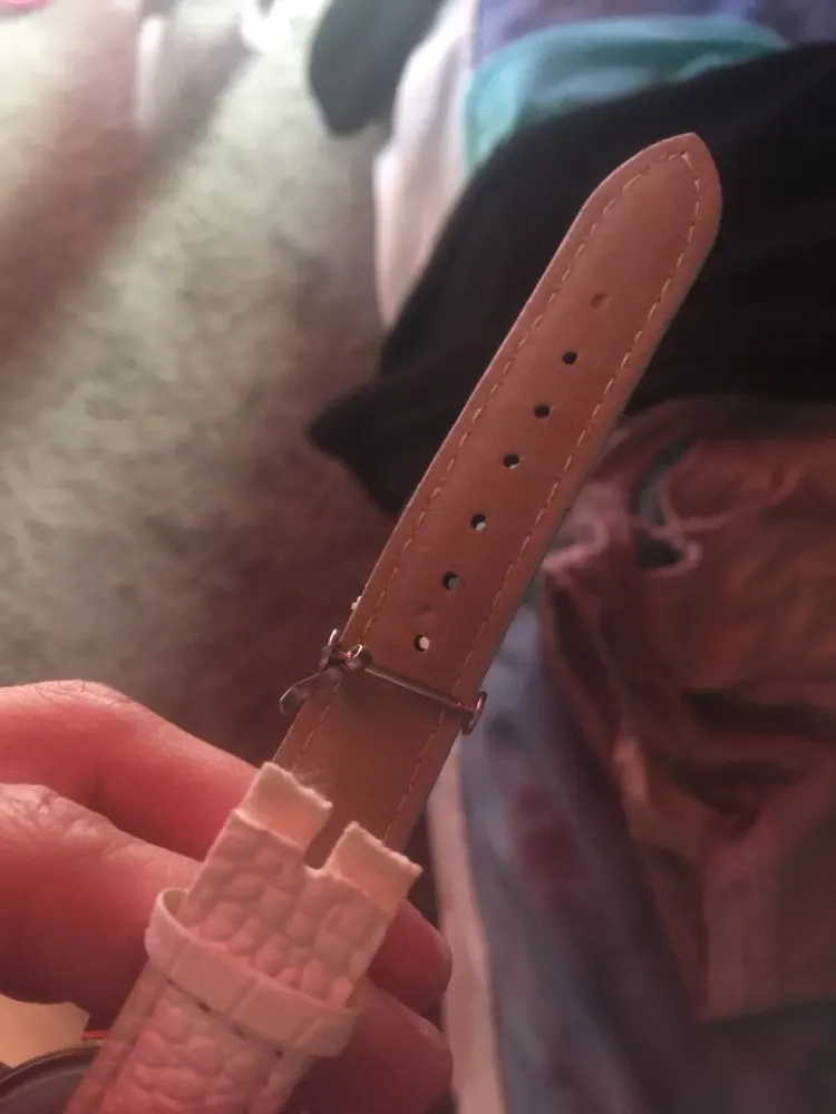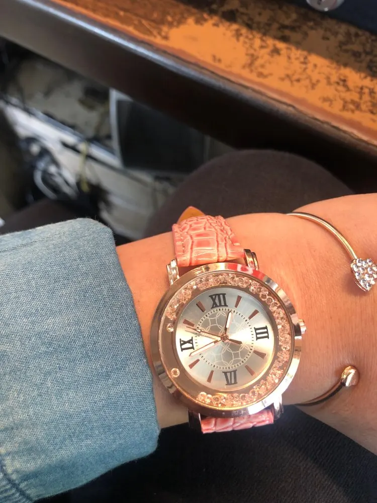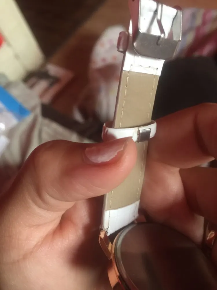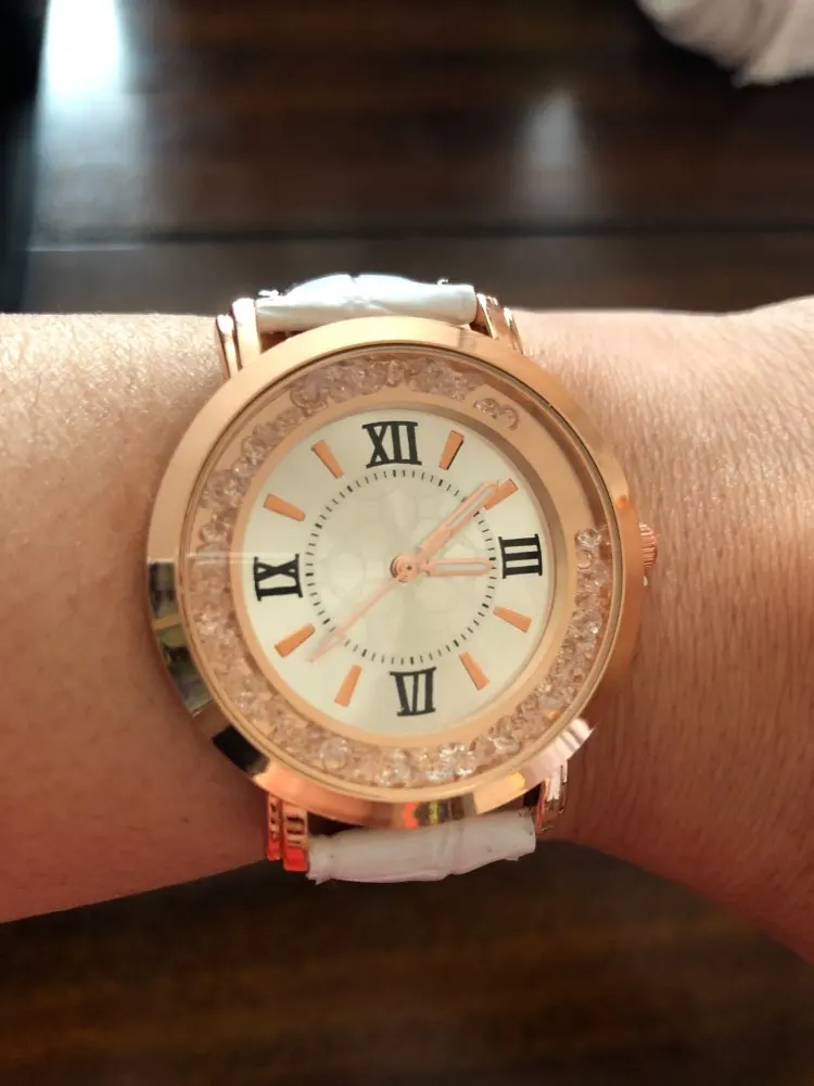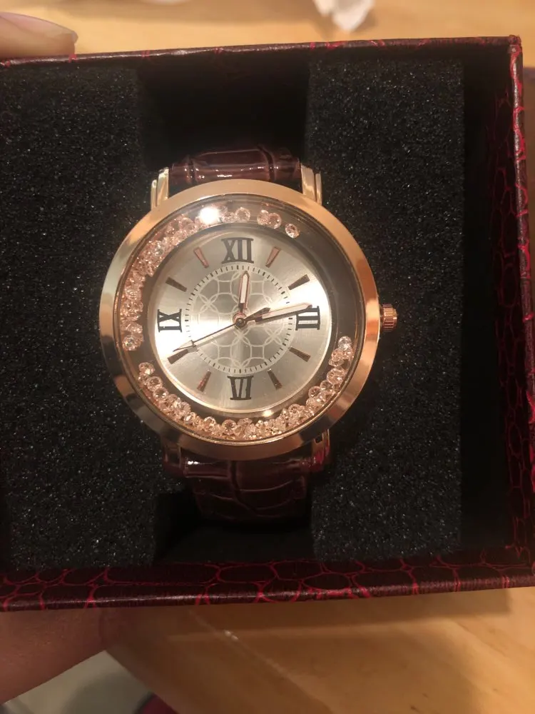 This is my 2nd purchase of this watch from this buyer. I bought this watch on Aliexpress from this store on July 30th, 2019. I received it today, August, 8th, 2019. So that is less than 10 days from China to Quebec, Canada. It came to me tracked and it was well packed, safely. The watch corresponds to the description. The color is true. The watch band is sewn right up to the face on either side of the strap. Therefore, I will not lose the watch when wearing it. The little beads inside the face may be silicone in order not to scratch the inside of the glass. It is very nicely and thoughtfully made. It has been working thus far without any problems. Thank you to the seller for another smooth transaction. 5 Stars! I uploaded 4 pictures of this watch for my review. Cheers!