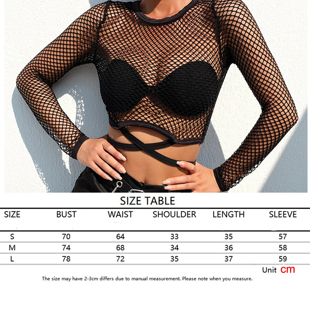 Features: Sexy Women’s Tops , Pattern , Mesh , Sheer , Loose , Fishnet , Long Sleeve