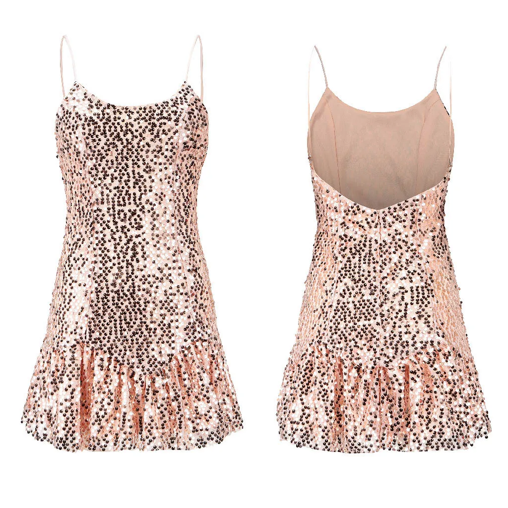 FREE SHIPPING New Spring Fashion Sexy Women’s Ladies Sequined Bling Shiny Party Midi Glitter Dress Backless Ladies Dresses For Female JKP1872