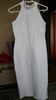 Great dress, all seams are neat, i an 5’3 and it comes 5” below the knee. The white is somewhat see through but not enough to be an issue. Looks like a more expensive dress. True to size.