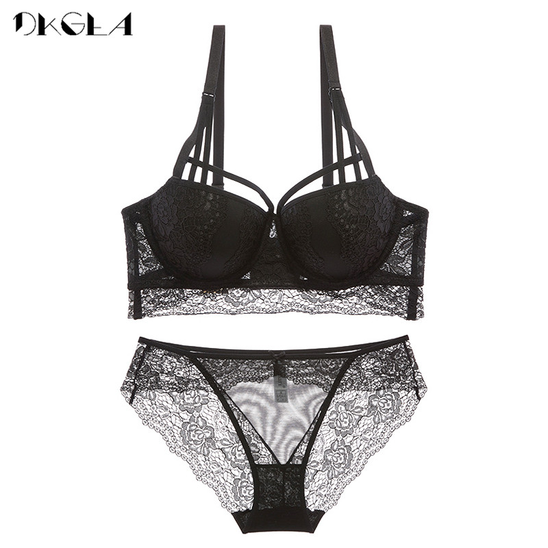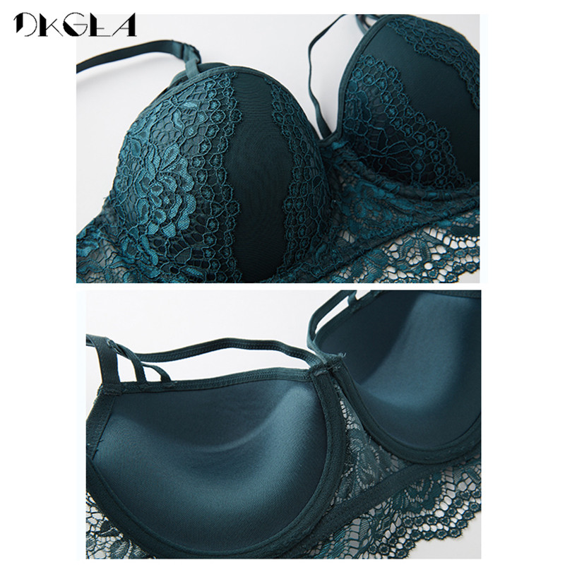FREE SHIPPING New Top Sexy Underwear Set Cotton Push-up Bra and Panty Sets 3/4 Cup Brand Green Lace Lingerie Set Women Deep V Brassiere Black JKP2701