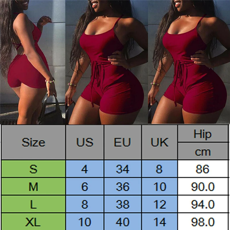 FREE SHIPPING New Women’s Sexy Lace-up Backless Sleeveless Bodycon Slim Fit Jumpsuit Summer Clubwear Bodysuit Short Pants JKP1919