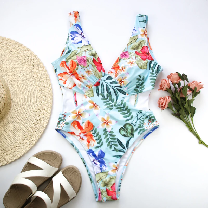 FREE SHIPPING Newest Hot Summer Sexy Backless One piece Deep V Neck Swimsuit Floral Peacock Print Fashion Women’s Swimwear Bikini JKP2411