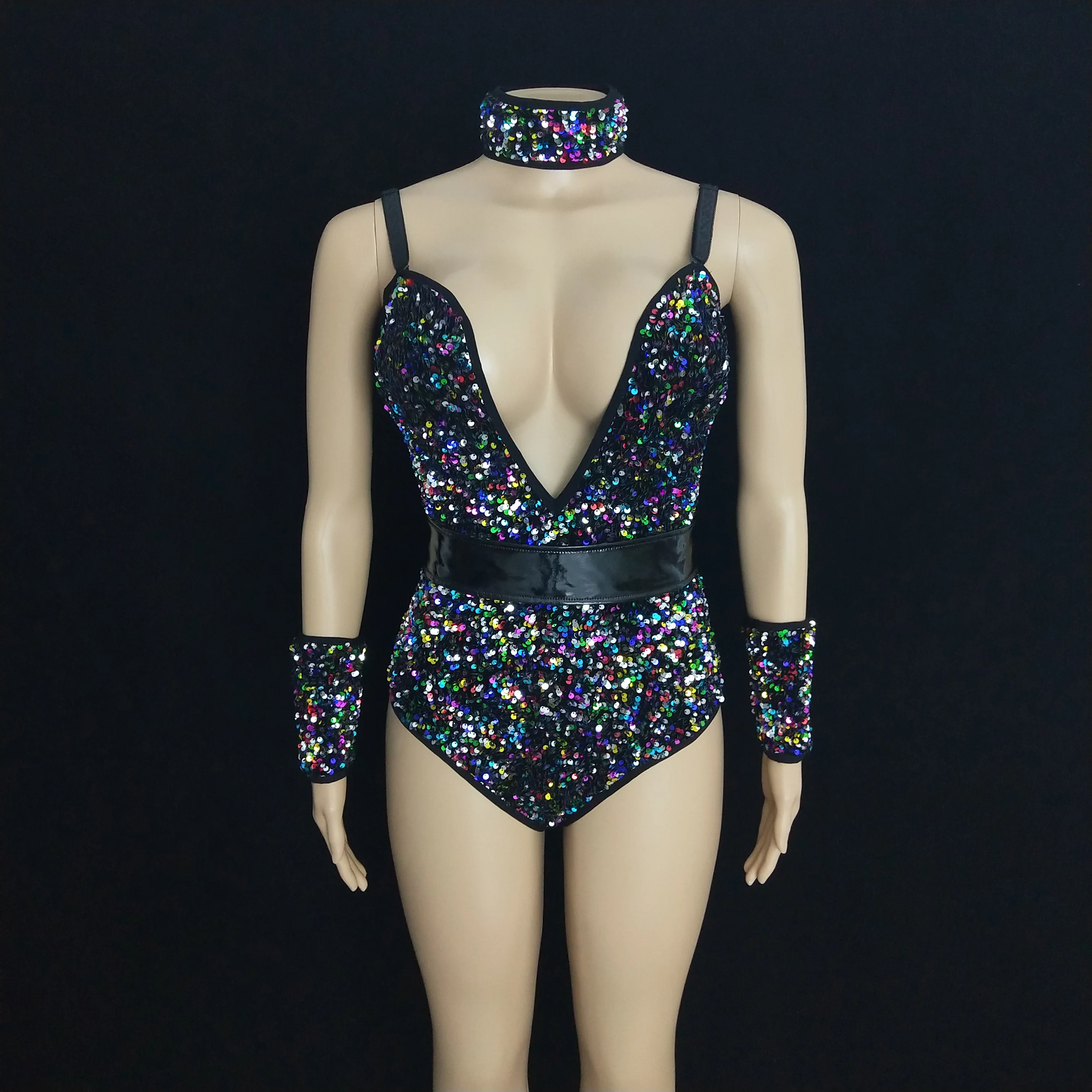 FREE SHIPPING Nightclub Outfit Colorful Sequins Bodysuit JKP6074