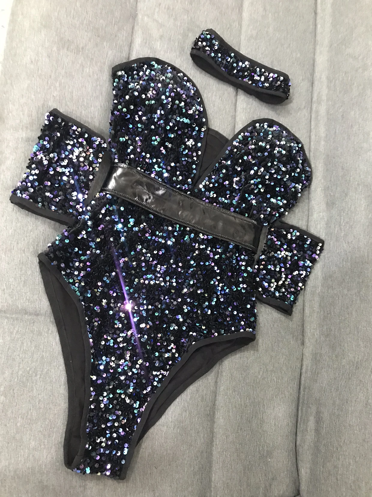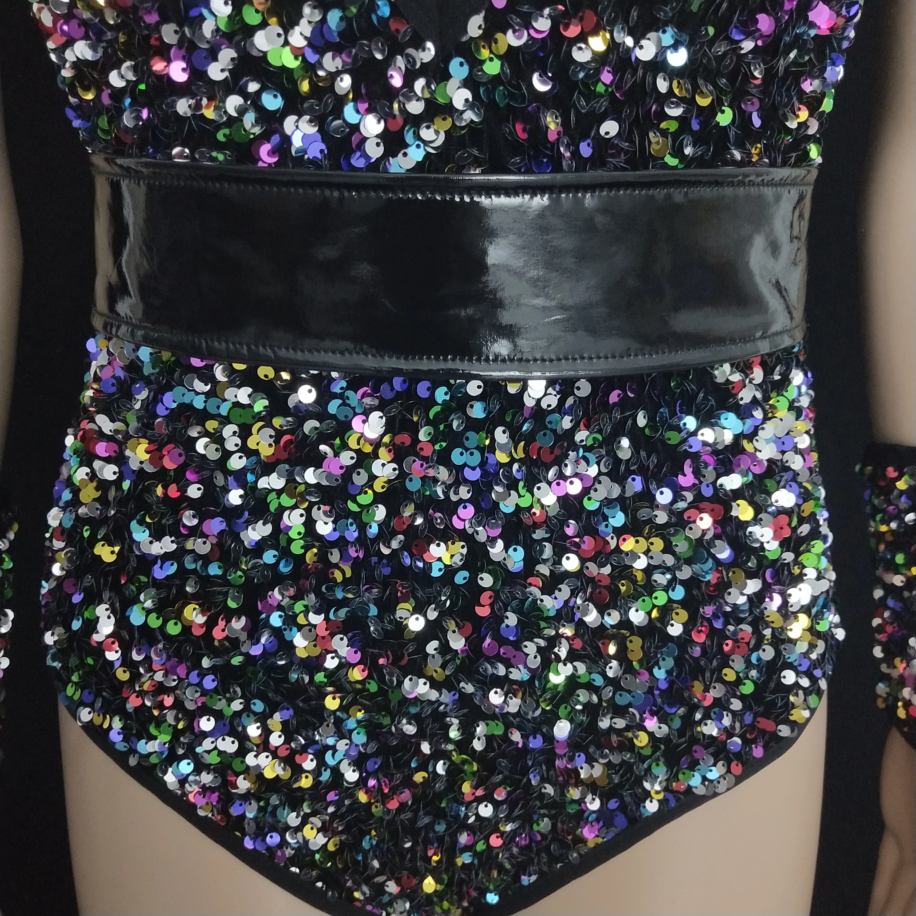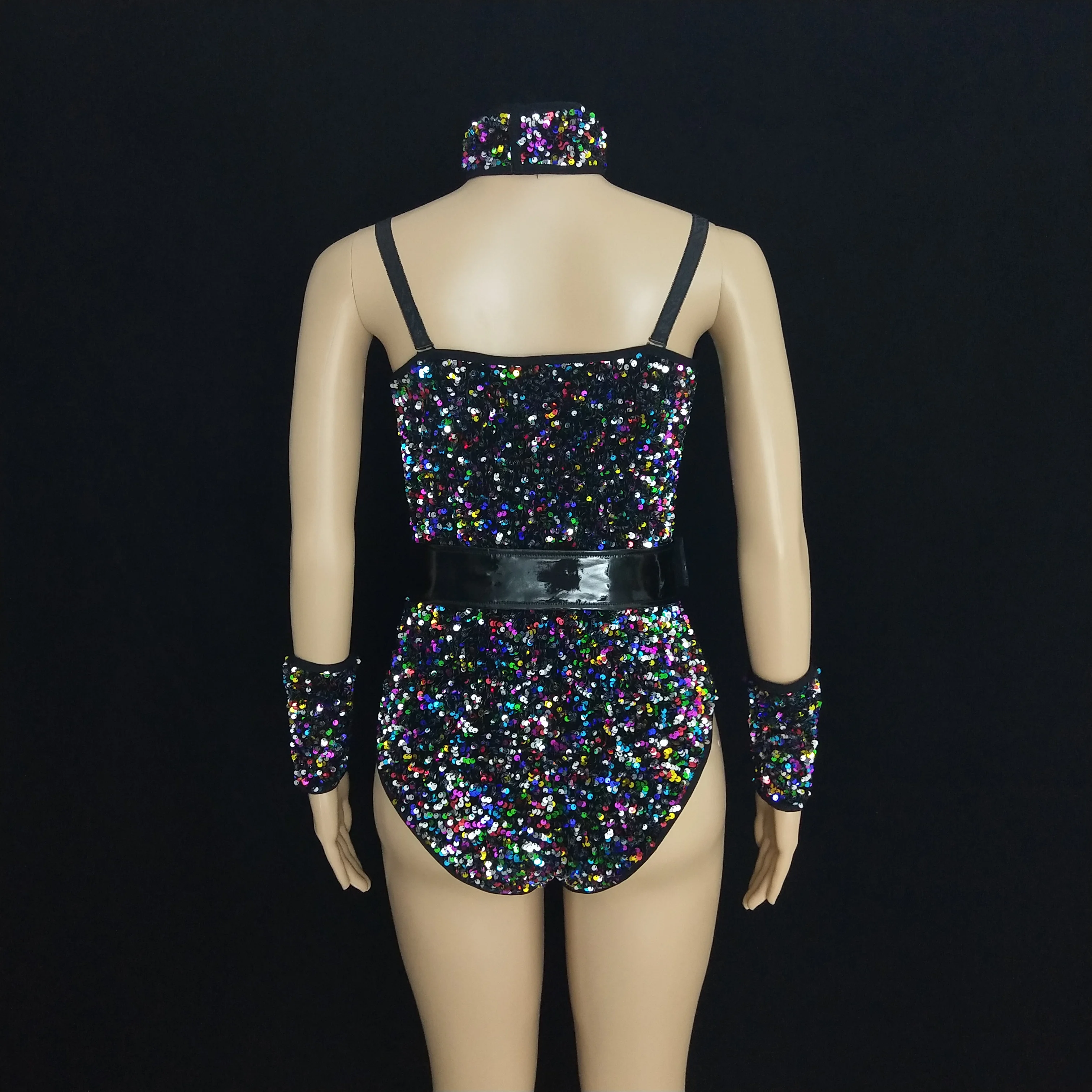 FREE SHIPPING Nightclub Outfit Colorful Sequins Bodysuit JKP6074