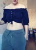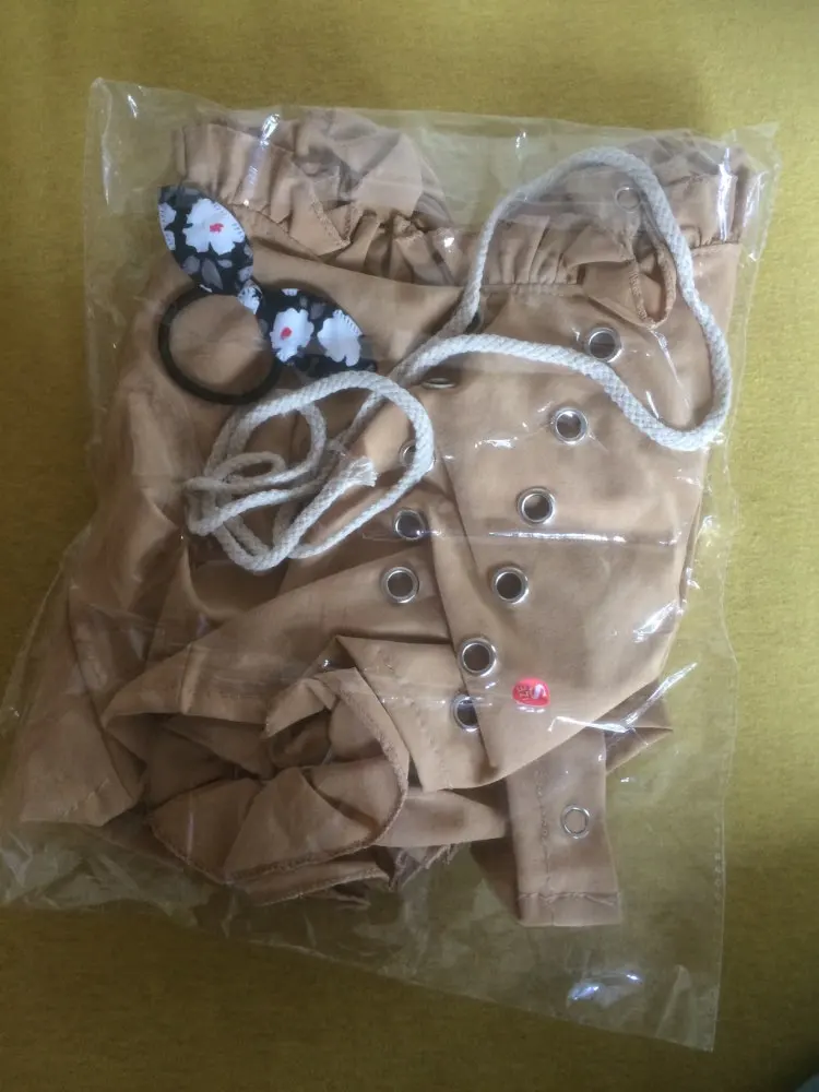 Top arrived quickly, track tracked. The package is slightly wet, but it did not cause any special problems. Fabric-a mixture of cotton and synthetics, does not roll down, but creases. Dries quickly, washed easily, seams and eyelets neat. Back buttons. Sits perfectly, did not even expect <3 size s suitable for 44-46, in front pulls. Suitable for small and medium breasts. In general, very satisfied, 5/5 :)