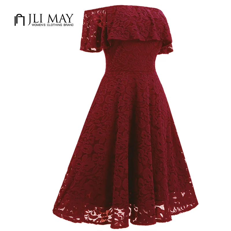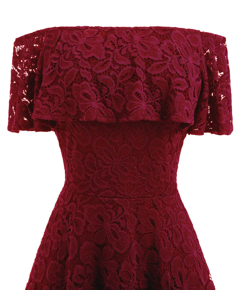 FREE SHIPPING Off Shoulder Lace Dress Slash Neck Maroon JKP13409![]()