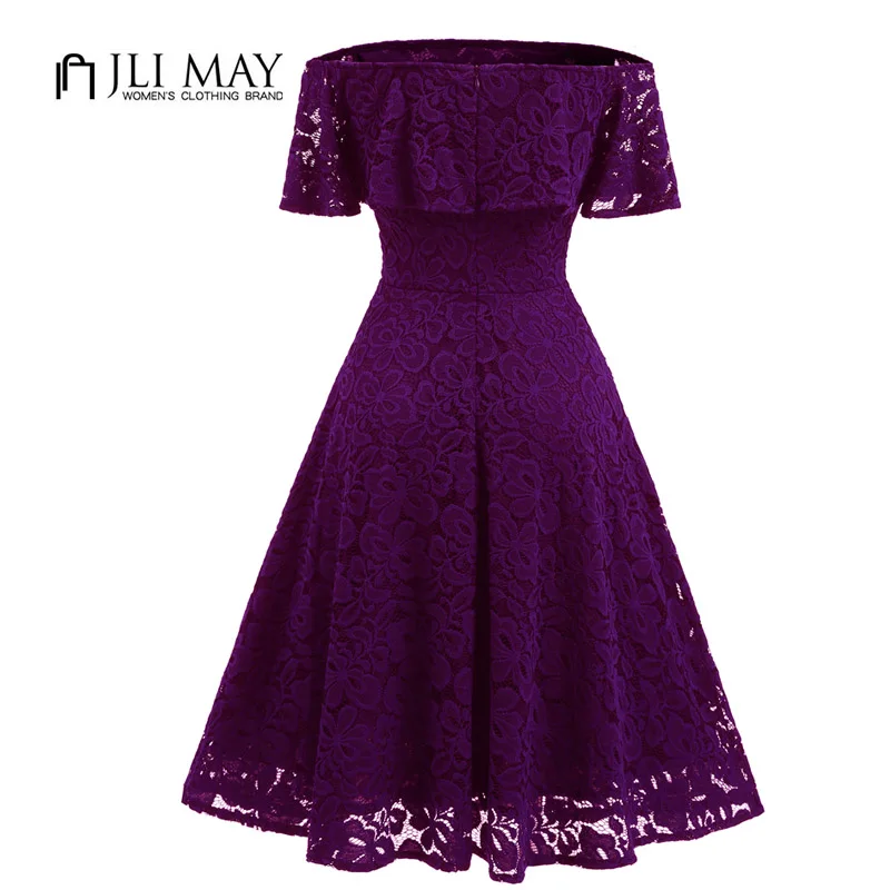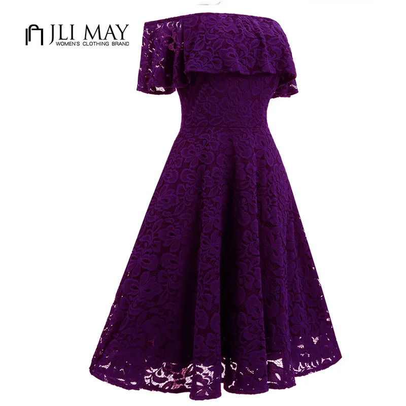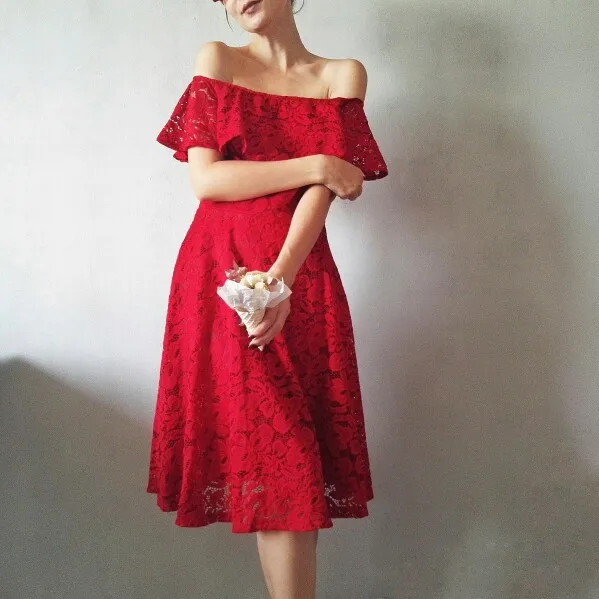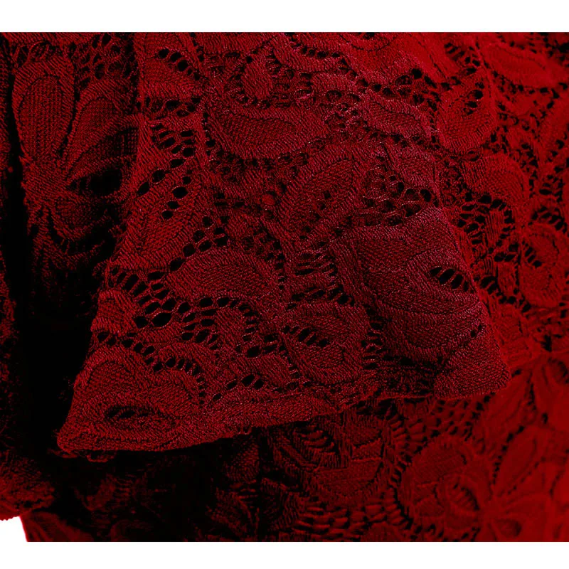 FREE SHIPPING Off Shoulder Lace Dress Slash Neck Maroon JKP13409![]()