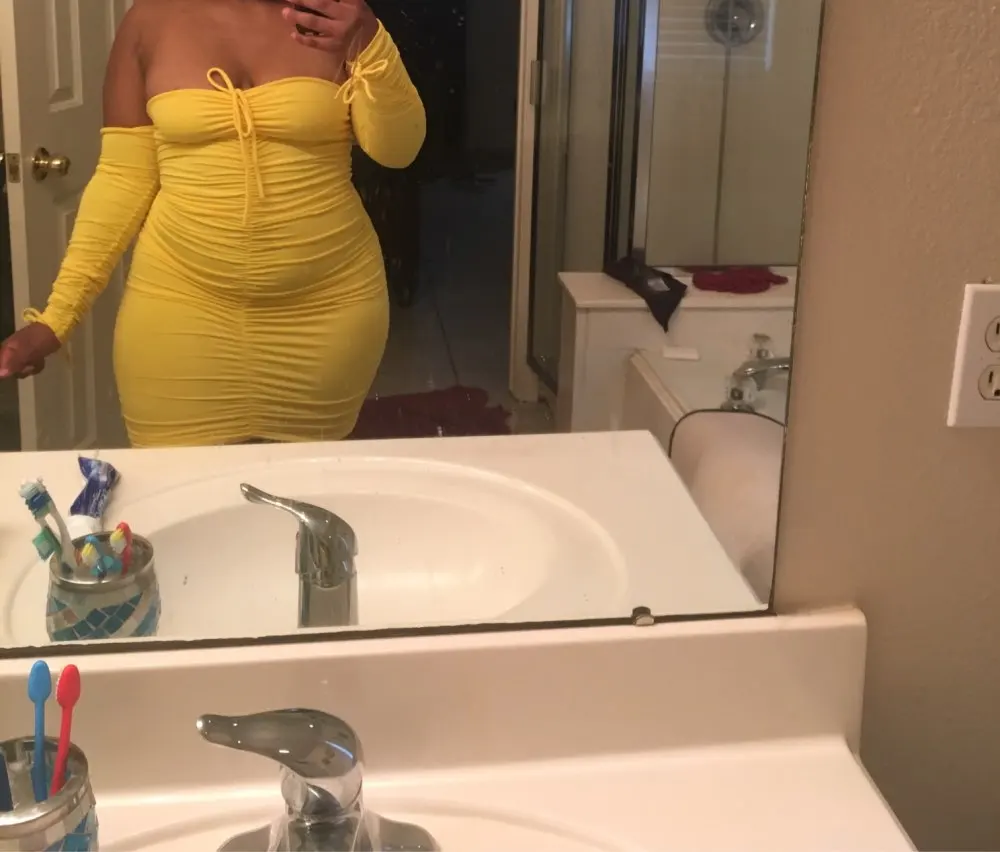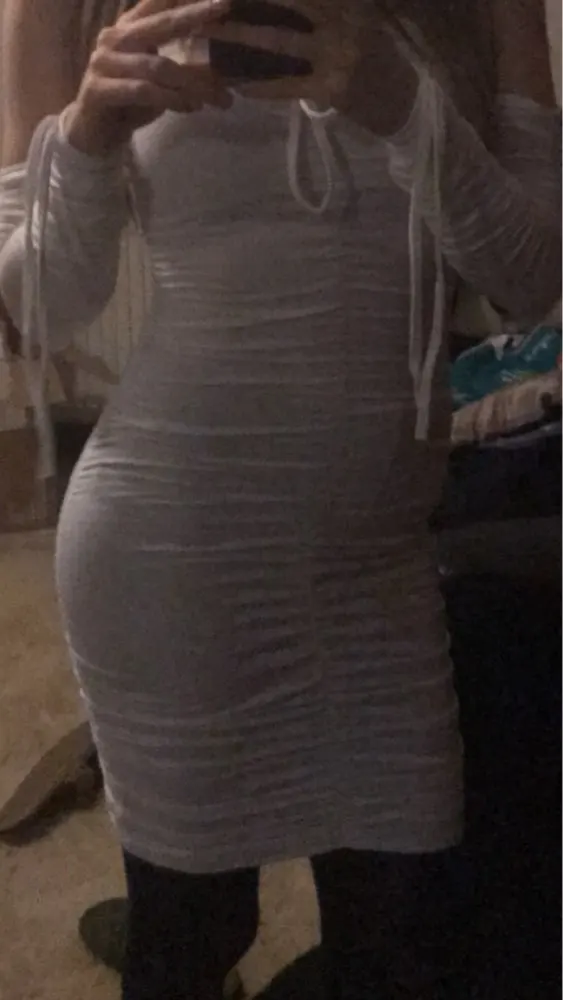 I got a medium was debating on getting a large glad I didn’t because the medium fit exactly how I wanted !!!! Material is very stretchy! I received the dress in about two weeks !
