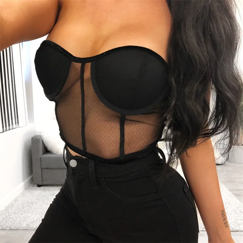 FREE SHIPPING Off Shoulder Mesh Lace Padded Crop Top JKP1234
