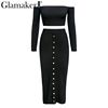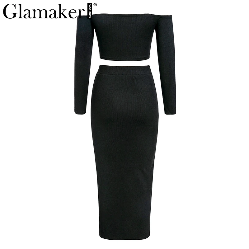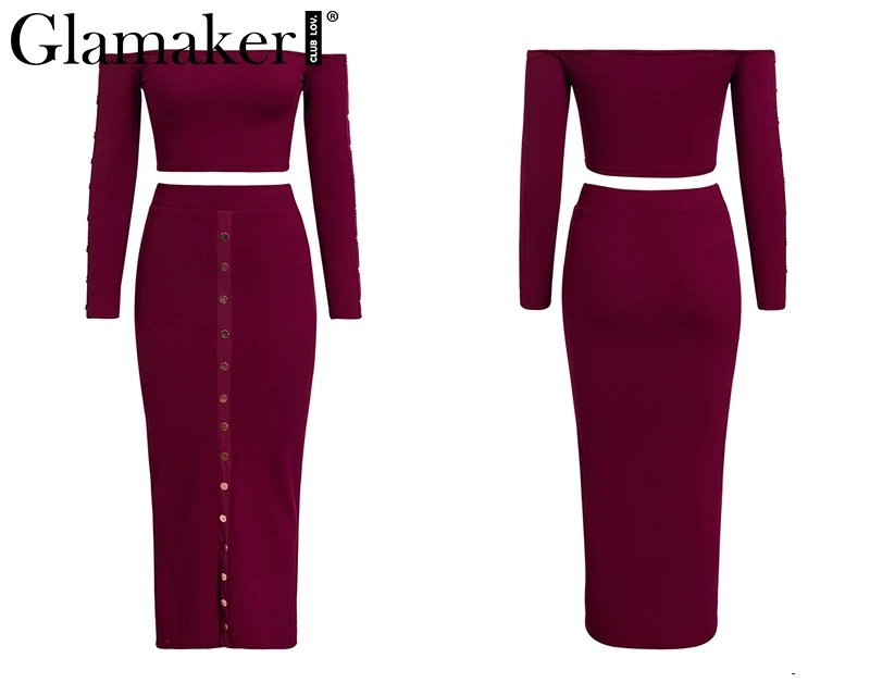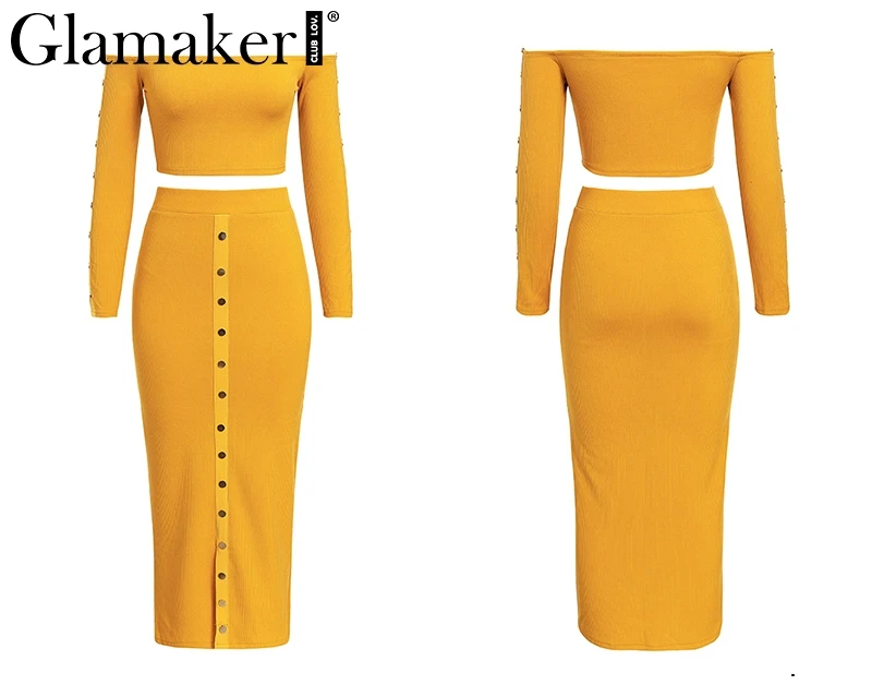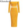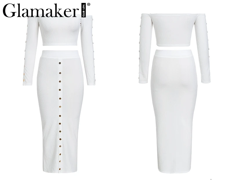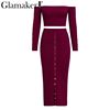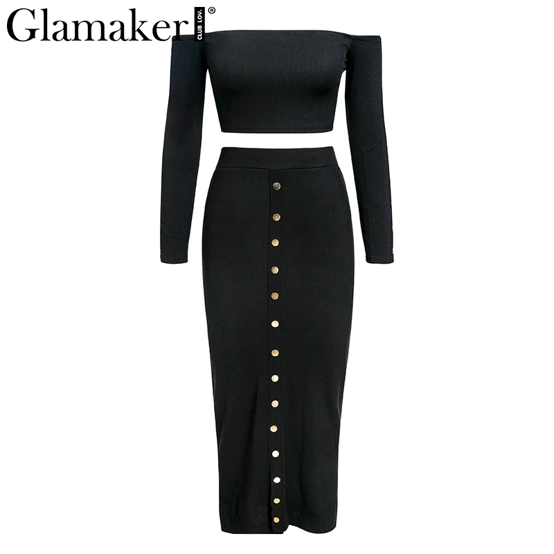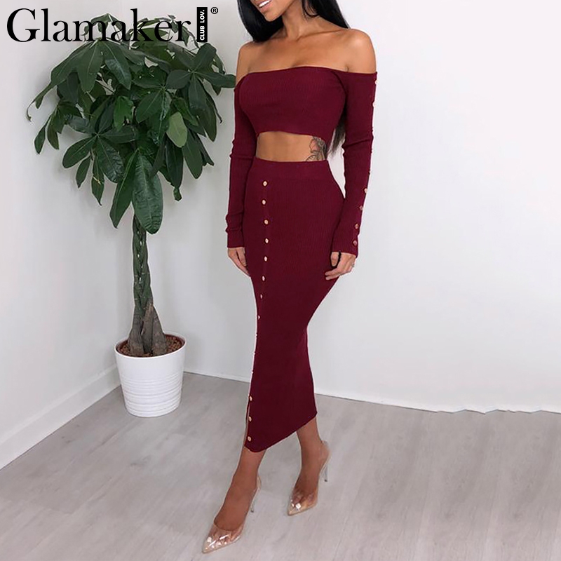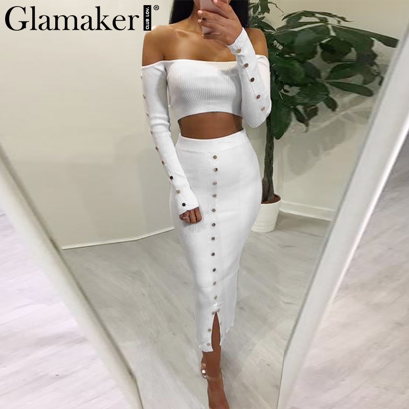 FREE SHIPPING Off Shoulder Metal Button Knitted Two Piece Set JKP1140