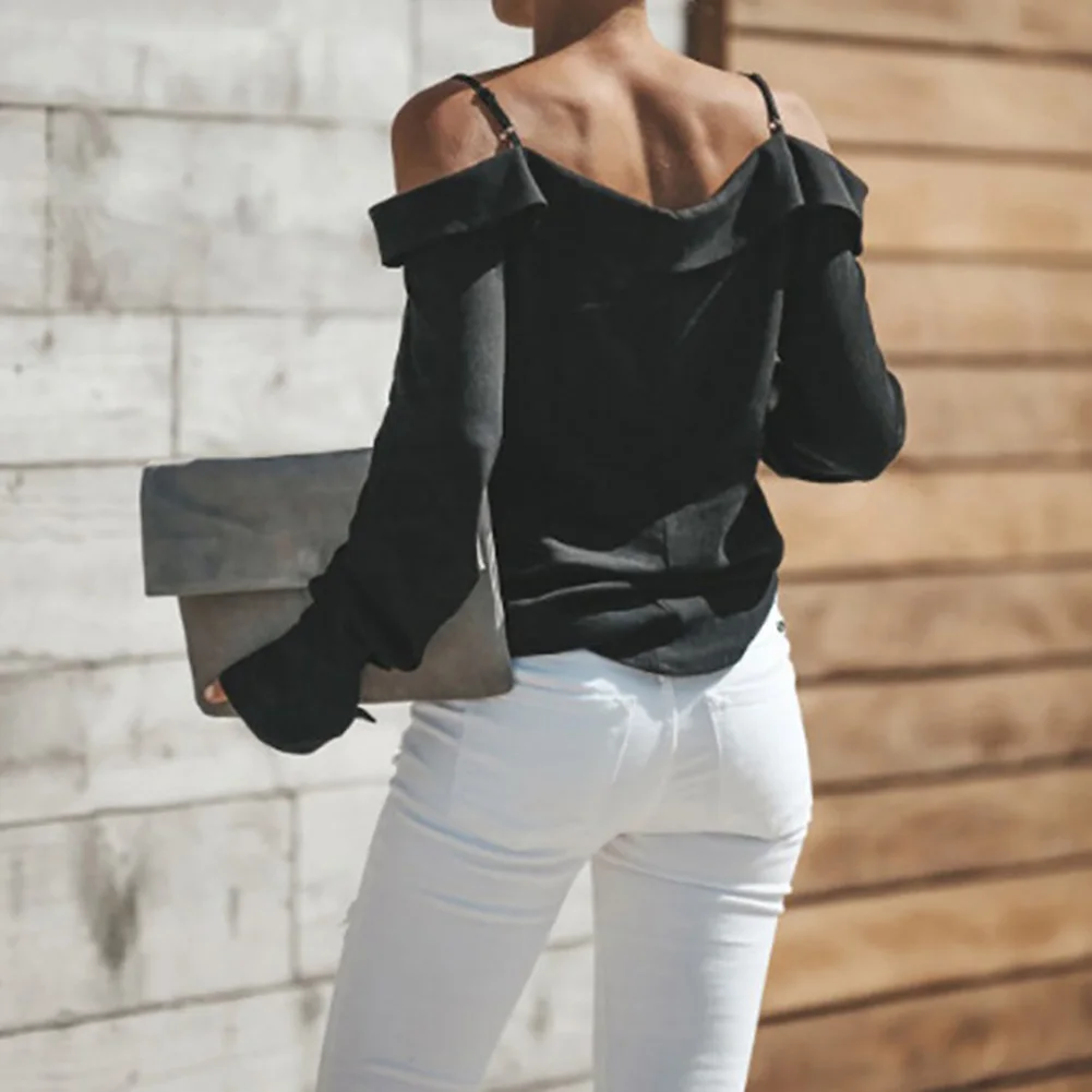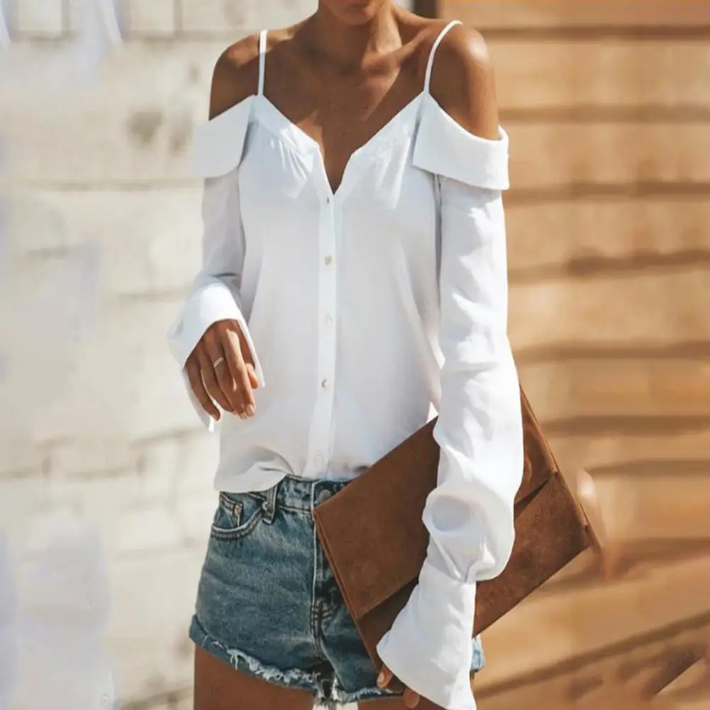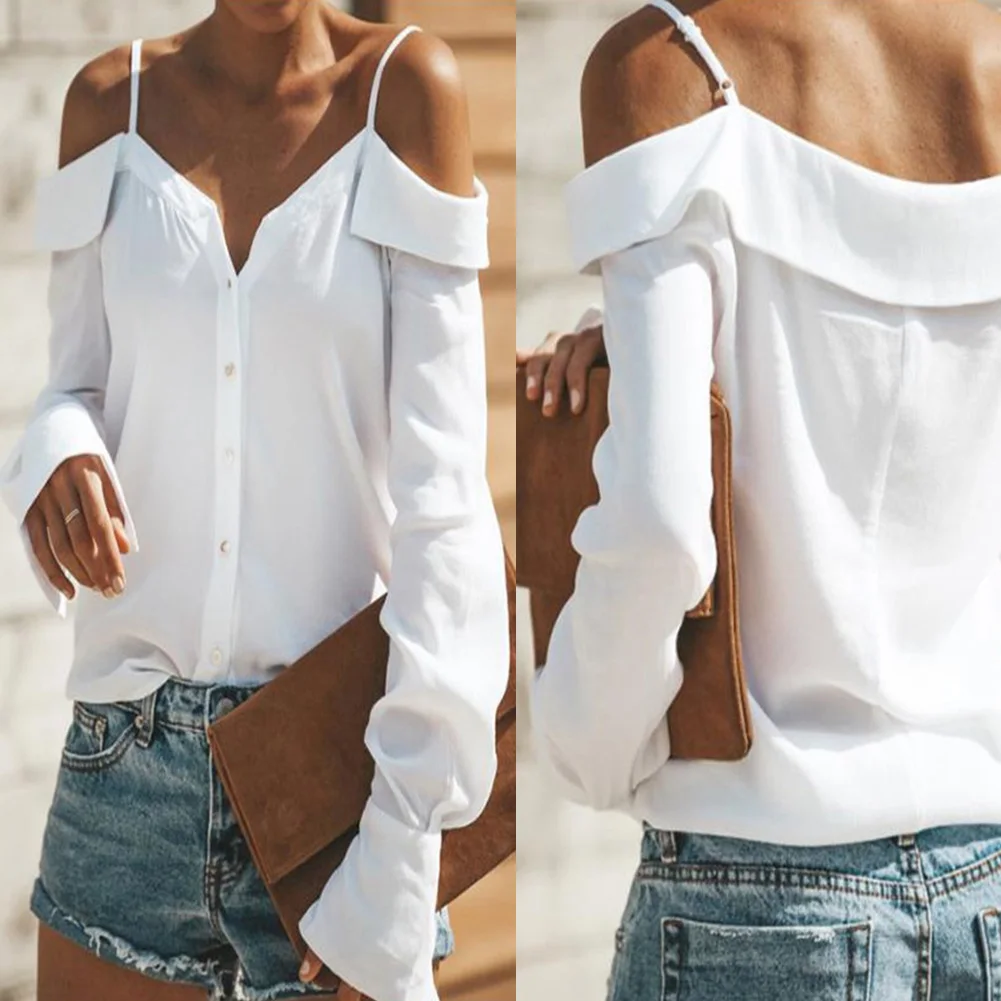 FREE SHIPPING !! Off Shoulder Shirt Casual Solid Long Sleeve Sexy V Neck JKP665
