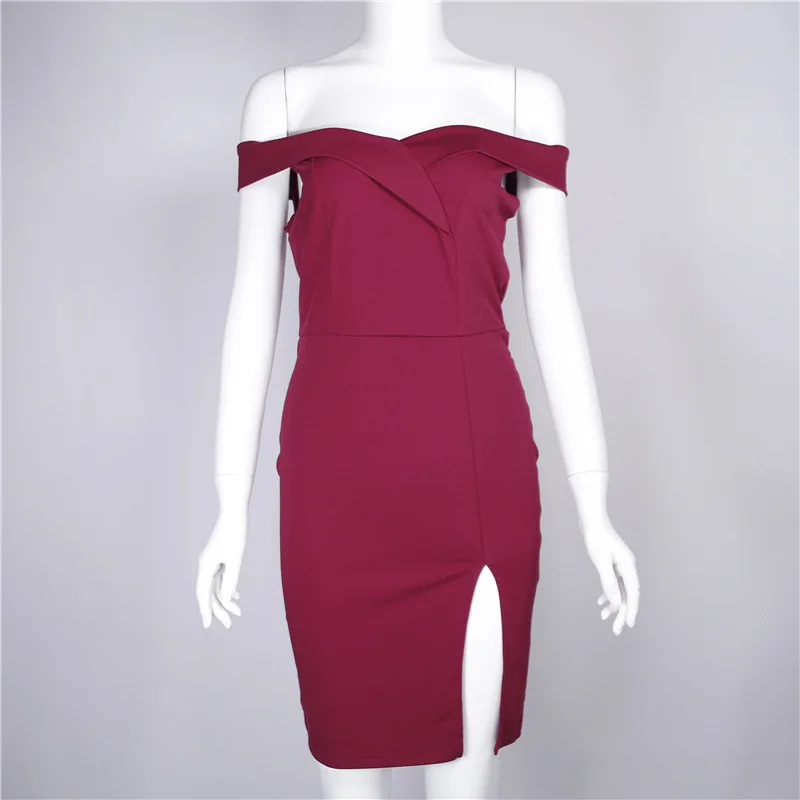FREE SHIPPING !! Off Shoulder Slash Neck Hot Slit Dress JKP941