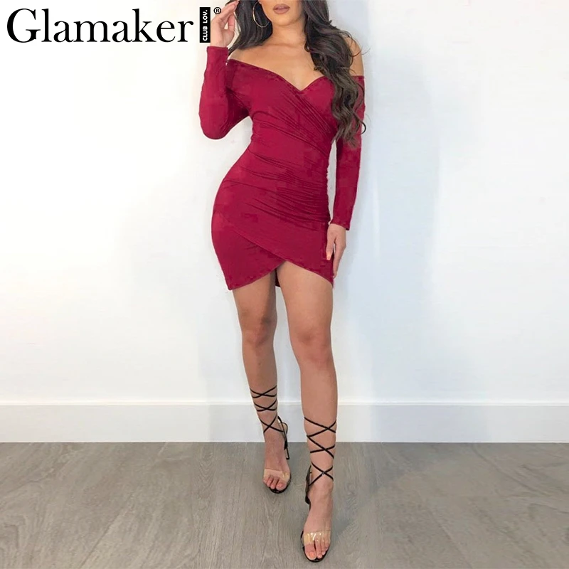 FREE SHIPPING Off Shoulder V Neck Women Long Sleeve Bodycon Mini Dress JKP1133