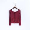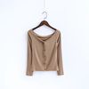 FREE SHIPPING Off The Shoulder Long Sleeve Tops Center Front Buttons JKP577