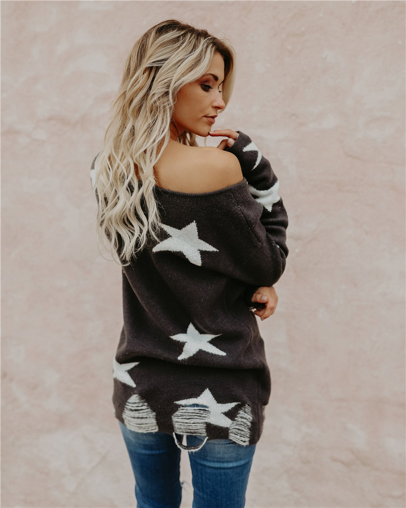 FREE SHIPPING Ofshoulder Stars Sweater Knitted JKP1360