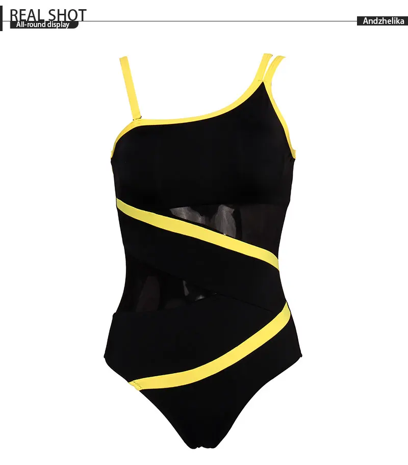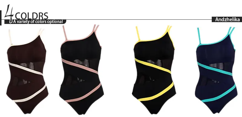 FREE SHIPPING One Piece Swimsuit Mesh Patchwork JKP4355