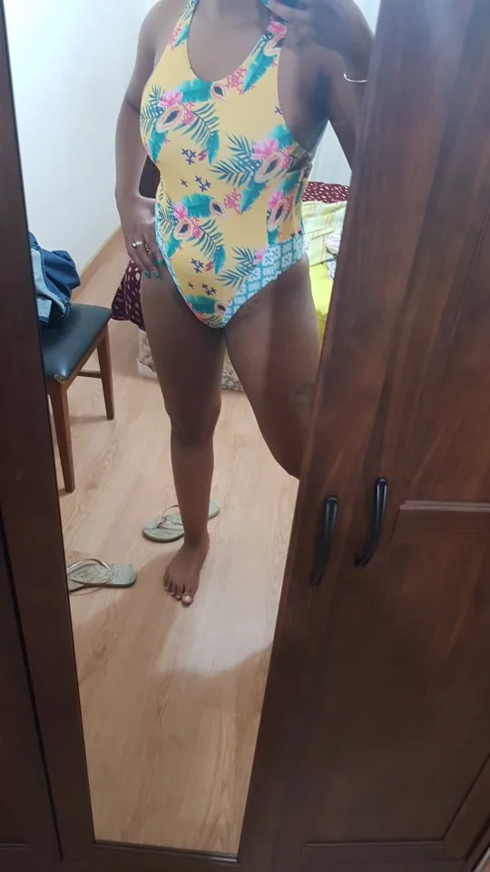Enjoyed! IS like the picture. Comfortable, great finishes, seams. Still offers a elastic hair same as bathing suit! I have 1,65 m and ordered the M. not know if will be very suitable to those chest very big.