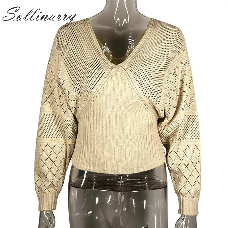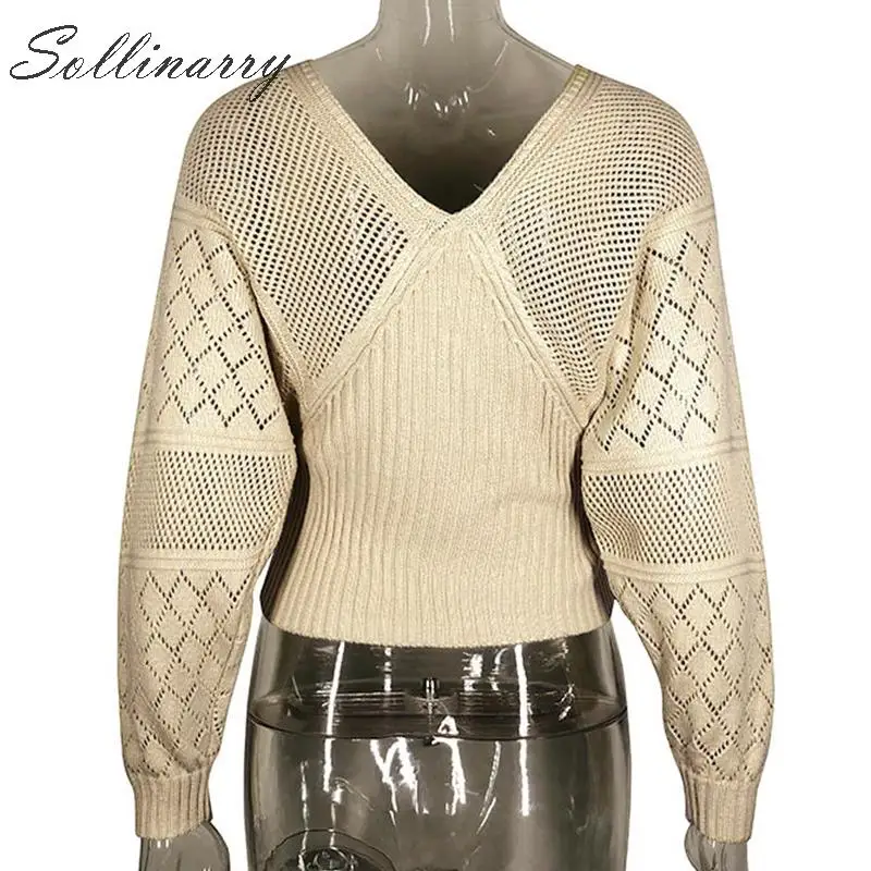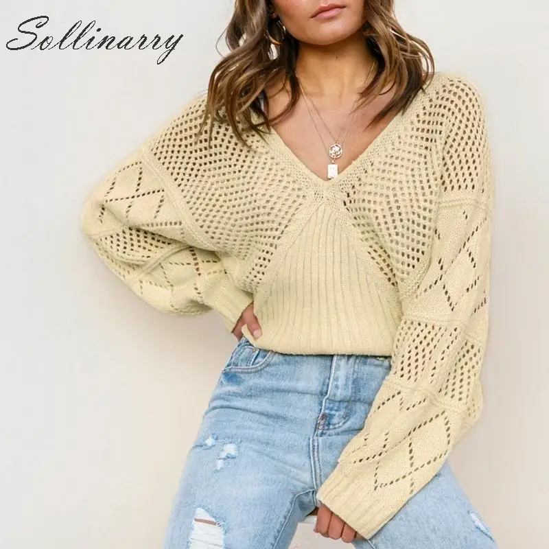 FREE SHIPPING Oversize Chic V Neck Women Hollow Out Pullovers Sexy Sweaters JKP3691