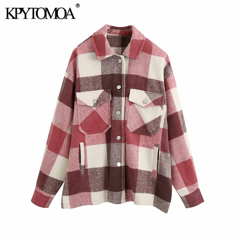 FREE SHIPPING Oversized Plaid Coat Vintage Style JKP4512